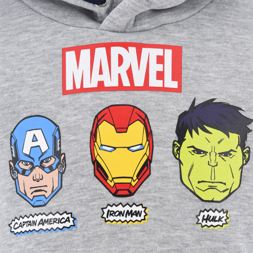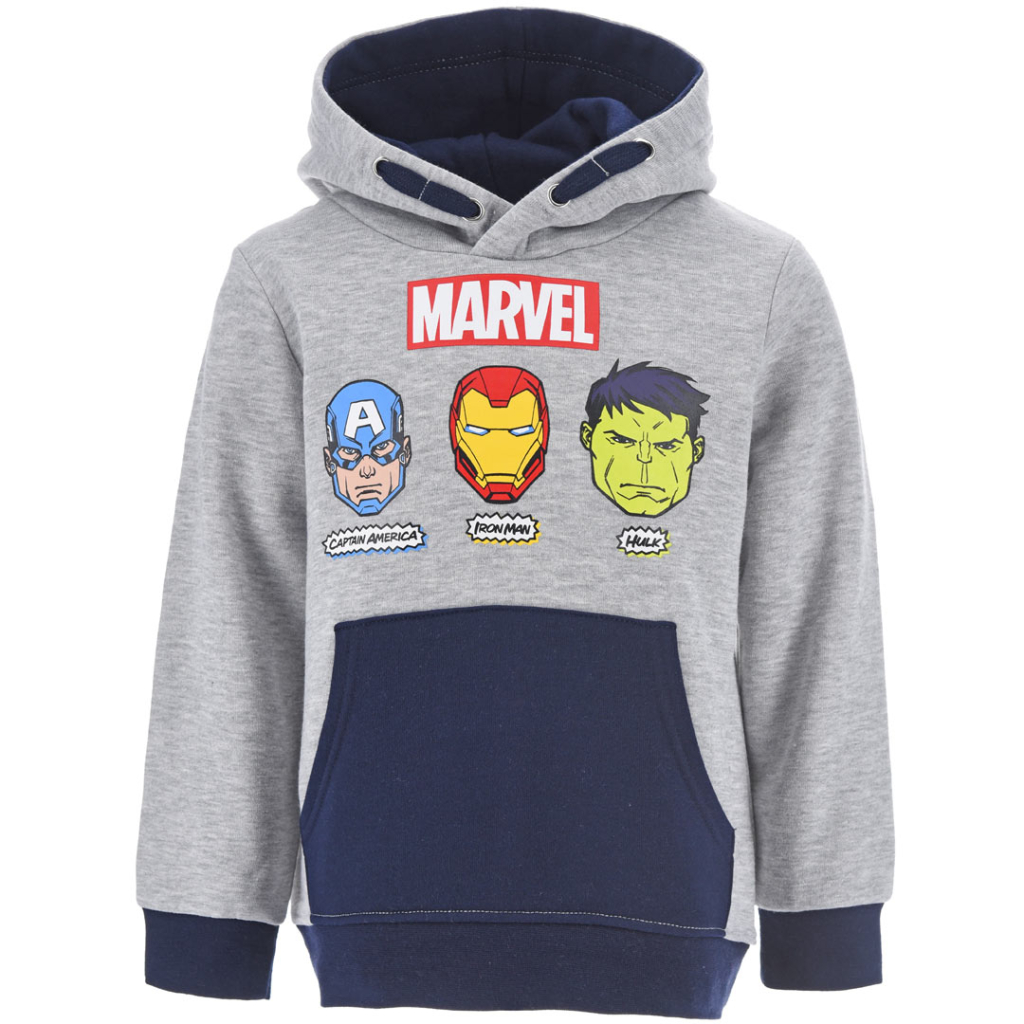 Chlapčenská mikina s Hulkom, Iron Manom a Kapitánom Amerika. Bez zapínania, s kapucňou, vpredu našité vrecko. Mäkká teplákovina s jemným chĺpkom na rubovej strane.Dodatočné parametre