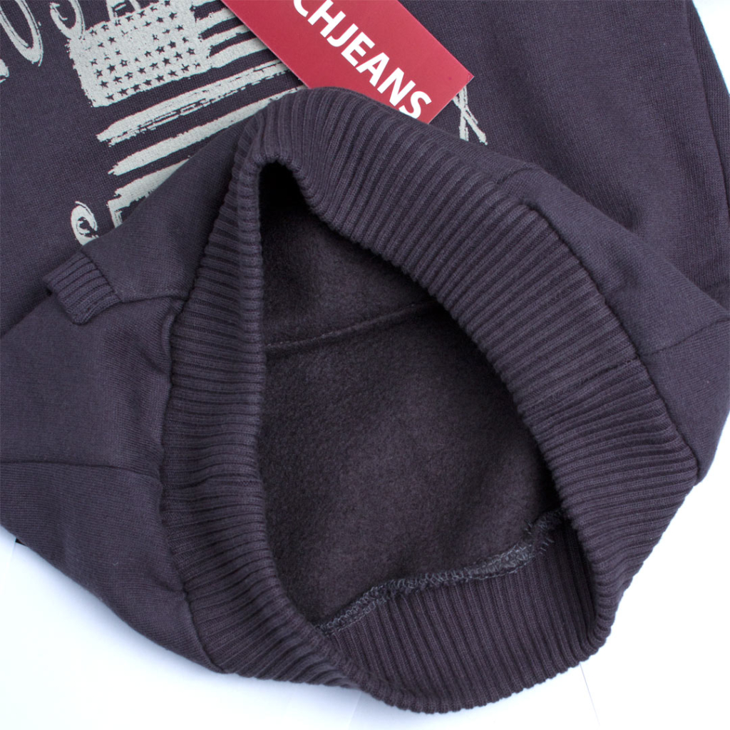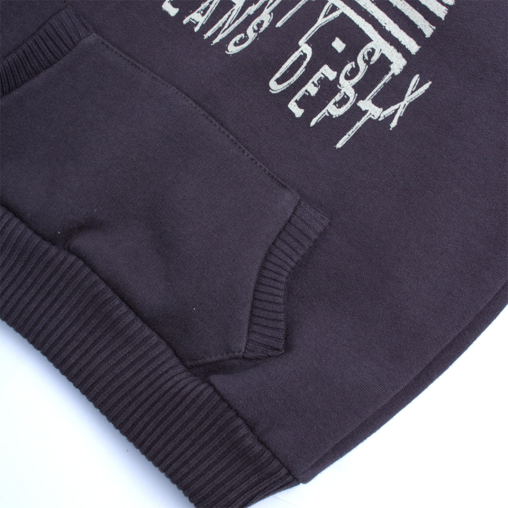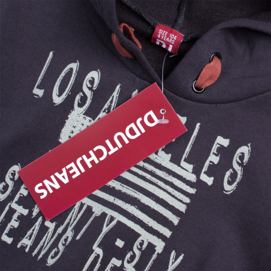 Chlapčenská mikina s kapucňou, bez zapínania. Vpredu potlač a vrecko, na rukáve nášivka. Teplákovina s hrejivým chĺpkom na rubovej strane.Dodatočné parametre