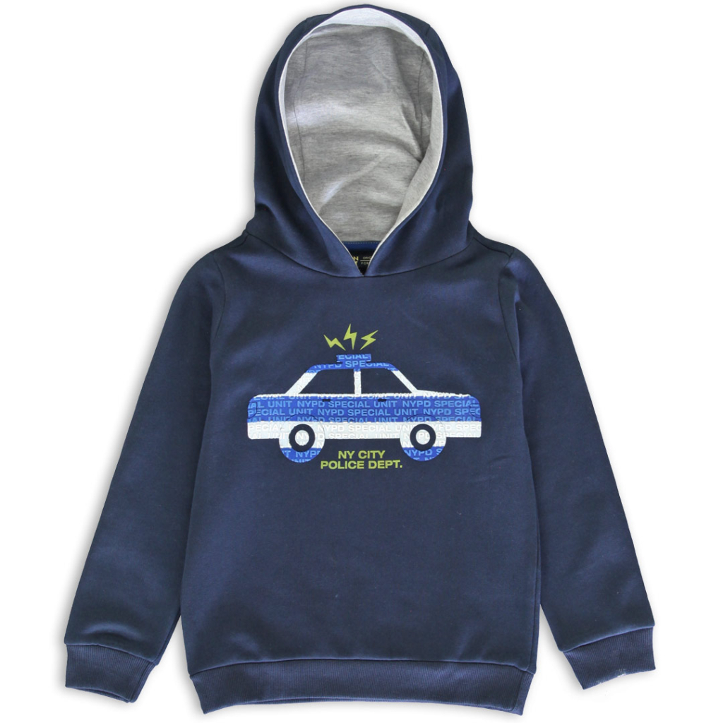 Chlapčenská mikina s plastickou potlačou policajného auta. Úplet s vysokým podielom bio bavlny. Na rube hrejivý chĺpok.Dodatočné parametre