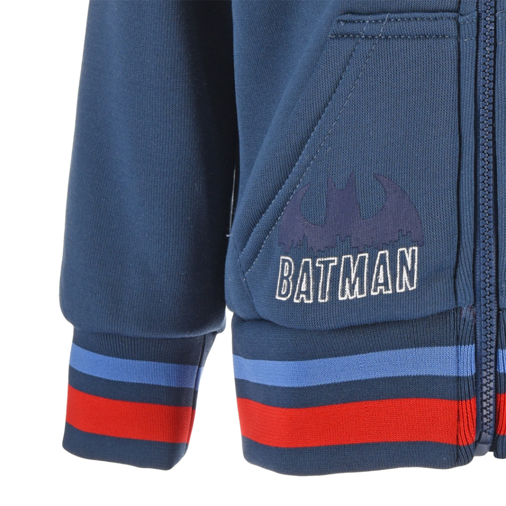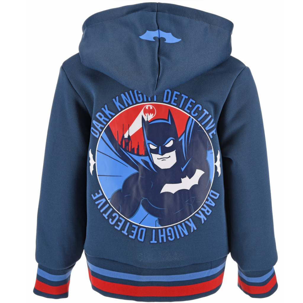 Rozopínacia chlapčenská mikina s kapucňou, s motívom Batmana. Našité vrecká. Vpredu nášivka, vzadu a na rukáve potlač. Na rube hrejivý chĺpok.Dodatočné parametre
