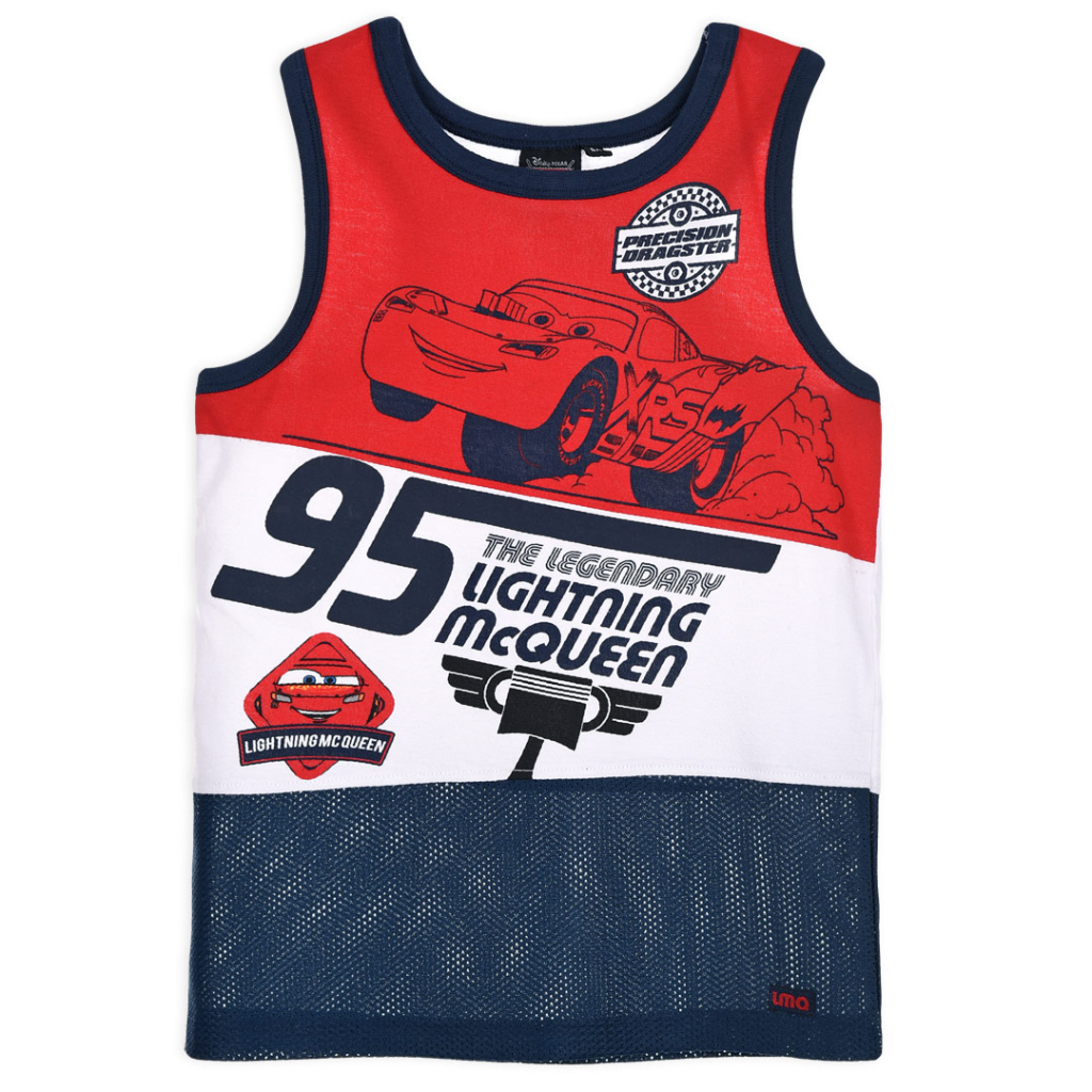 Letná súprava pre chlapcov. Tričko bez rukávov, šortky v páse na gumu, so šnúrkou na stiahnutie. Na bokoch vrecká. Motív z filmu Autá. Príjemný bavlnený úplet.Dodatočné parametre