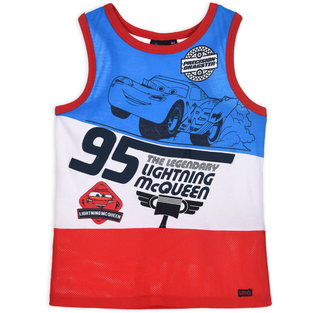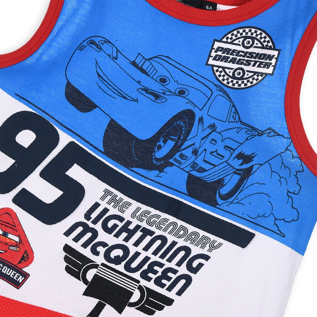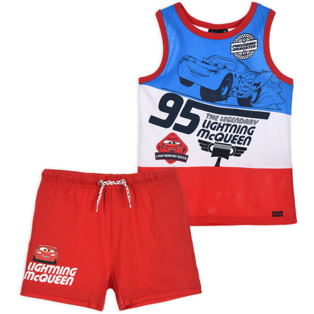 Letná súprava pre chlapcov. Tričko bez rukávov, šortky v páse na gumu, so šnúrkou na stiahnutie. Na bokoch vrecká. Motív z filmu Autá. Príjemný bavlnený úplet.Dodatočné parametre