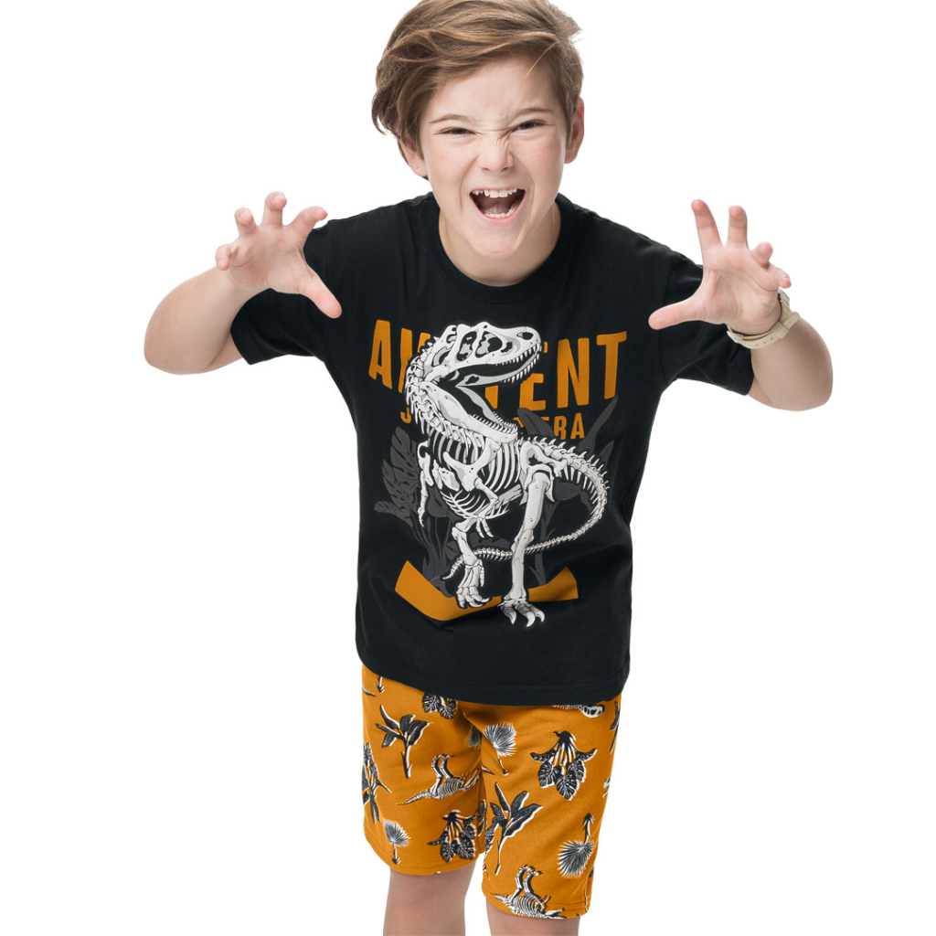 Letná súprava pre chlapcov. Tričko s krátkym rukávom, z pružného úpletu, so super dinosaurovou potlačou. Pohodlné šortky v páse na gumu.Dodatočné parametre