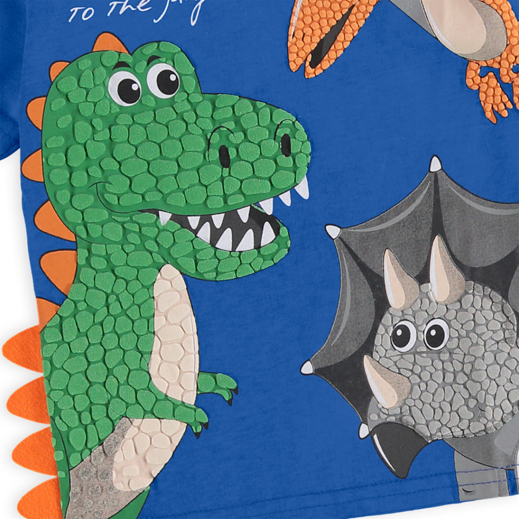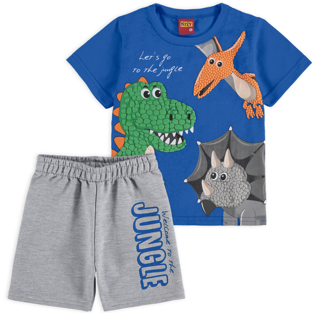 Super letná súprava pre chlapcov. Tričko s krátkym rukávom, potlač s dinosaurím motívom. Šortky s nápisom, z pohodlné teplákoviny, v páse na gumu. Vyrobené v Brazílii.Dodatočné parametre