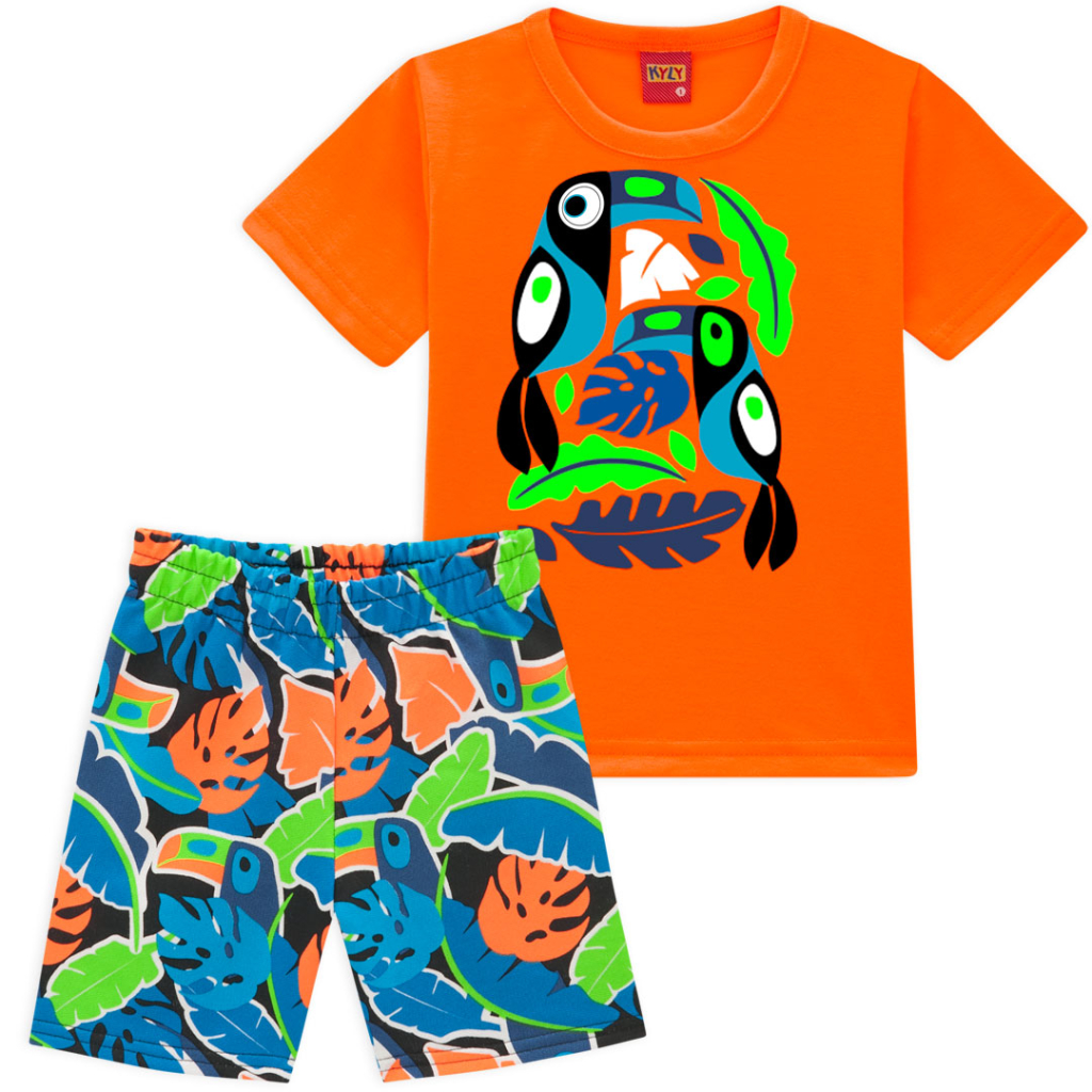 Letná chlapčenská súprava. Tričko s krátkym rukávom, s farebnou potlačou. Pohodlné šortky. Príjemný materiál, výrazné farby. Vyrobené v Brazílii.Dodatočné parametre
