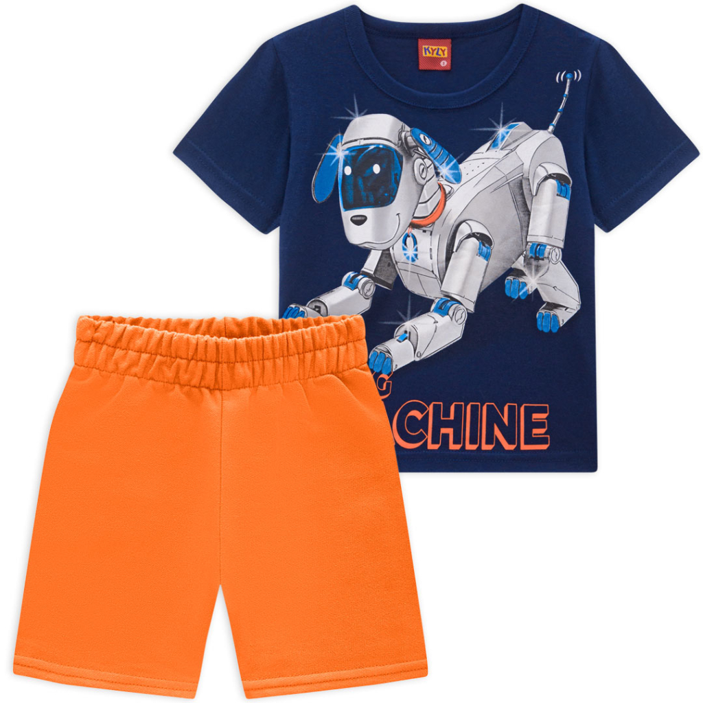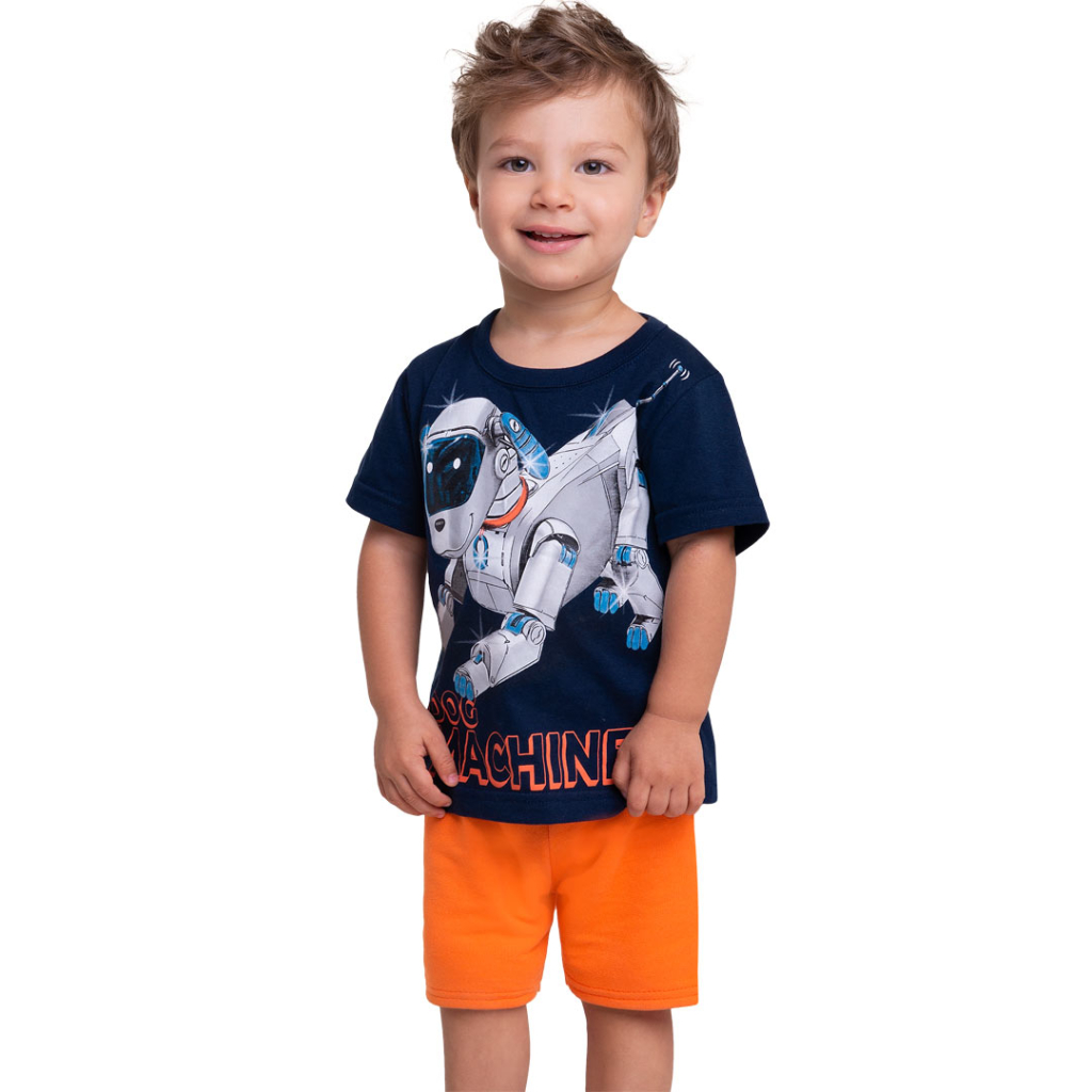 Letná súprava pre chlapcov. Tričko s krátkym rukávom, s obrázkom robotického psíka. Jednofarebné šortky z teplákoviny, na rube bez chĺpku. Vyrobené v Brazílii.Dodatočné parametre