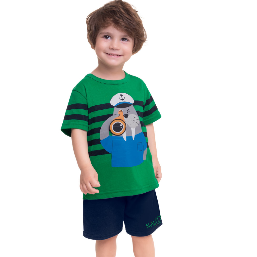 Skvelý letný set pre chlapcov. Tričko s krátkym rukávom, s potlačou a našitou aplikáciou. Šortky z teplákoviny, na rube bez chĺpku, s nápisom na nohavici. Vyrobené v Brazílii.Dodatočné parametre