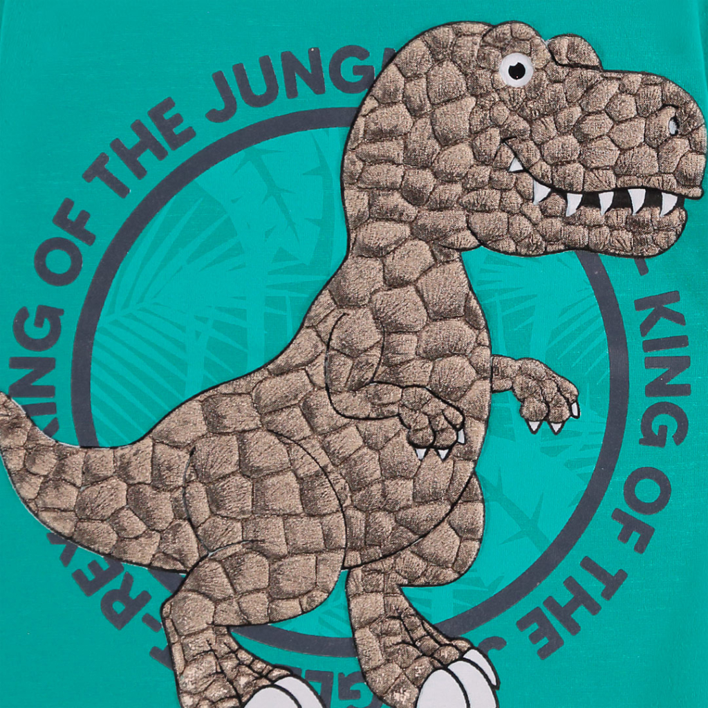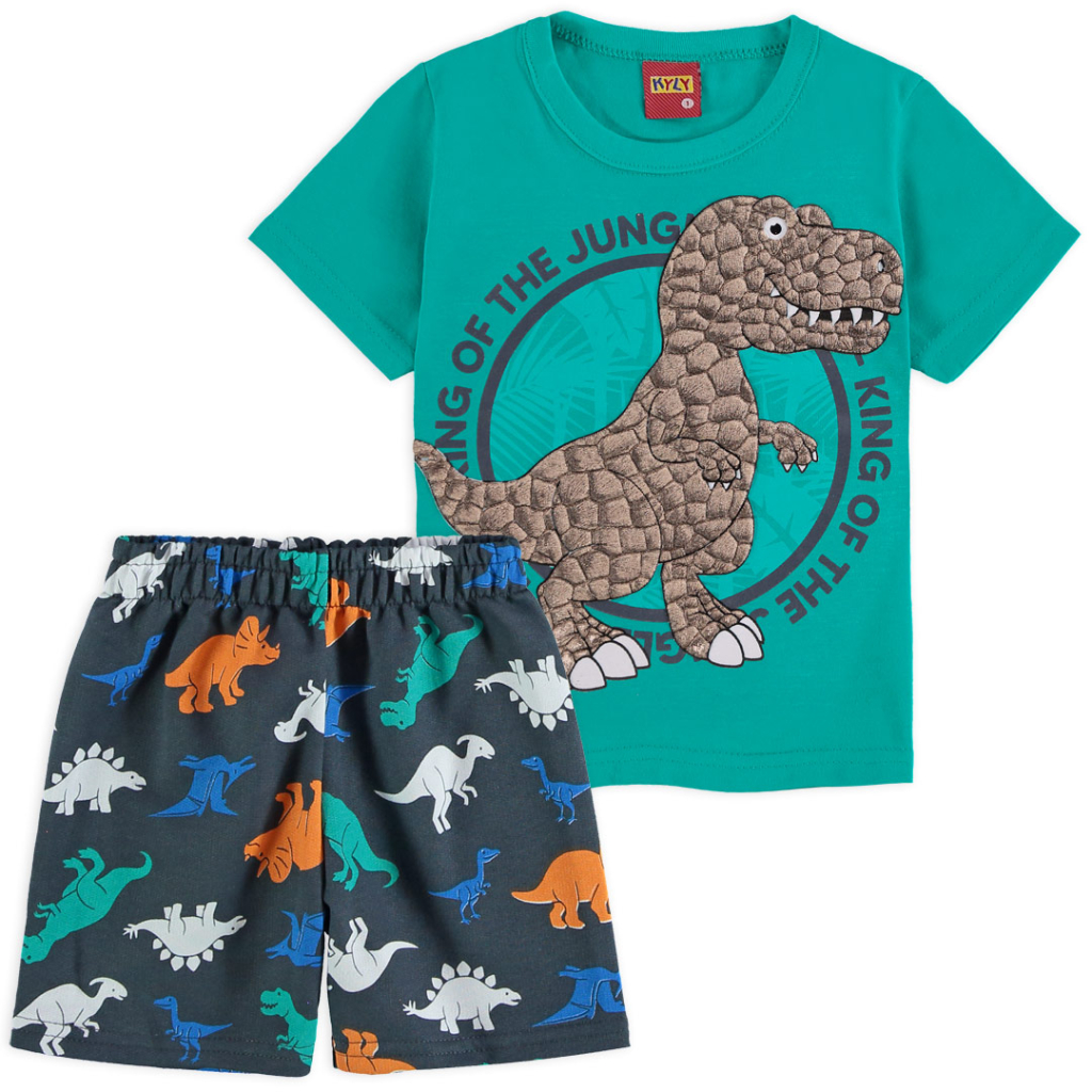 Chlapčenský letný komplet. Tričko s krátkym rukávom, mierne plastická potlač s metalickým efektom. Pohodlné šortky s celopotlačou, v páse na gumu. Vyrobené v Brazílii.Dodatočné parametre