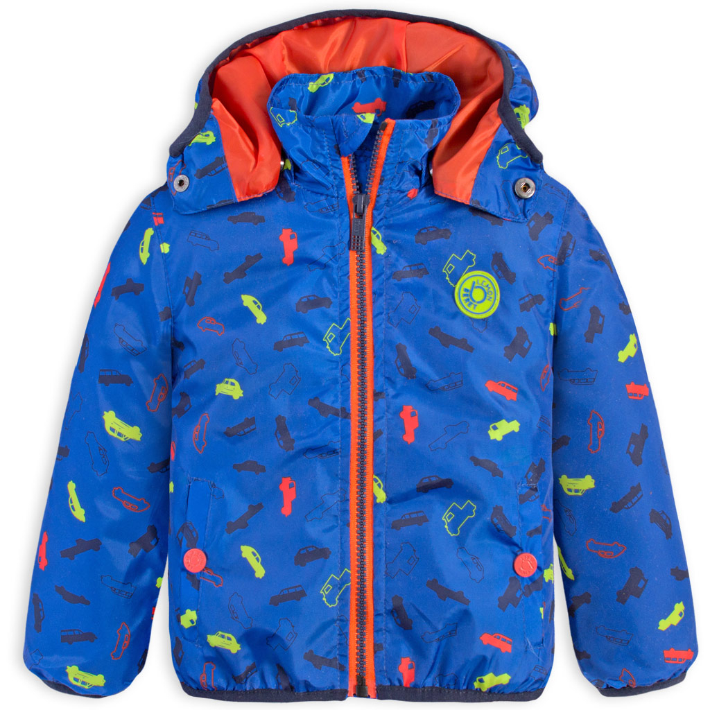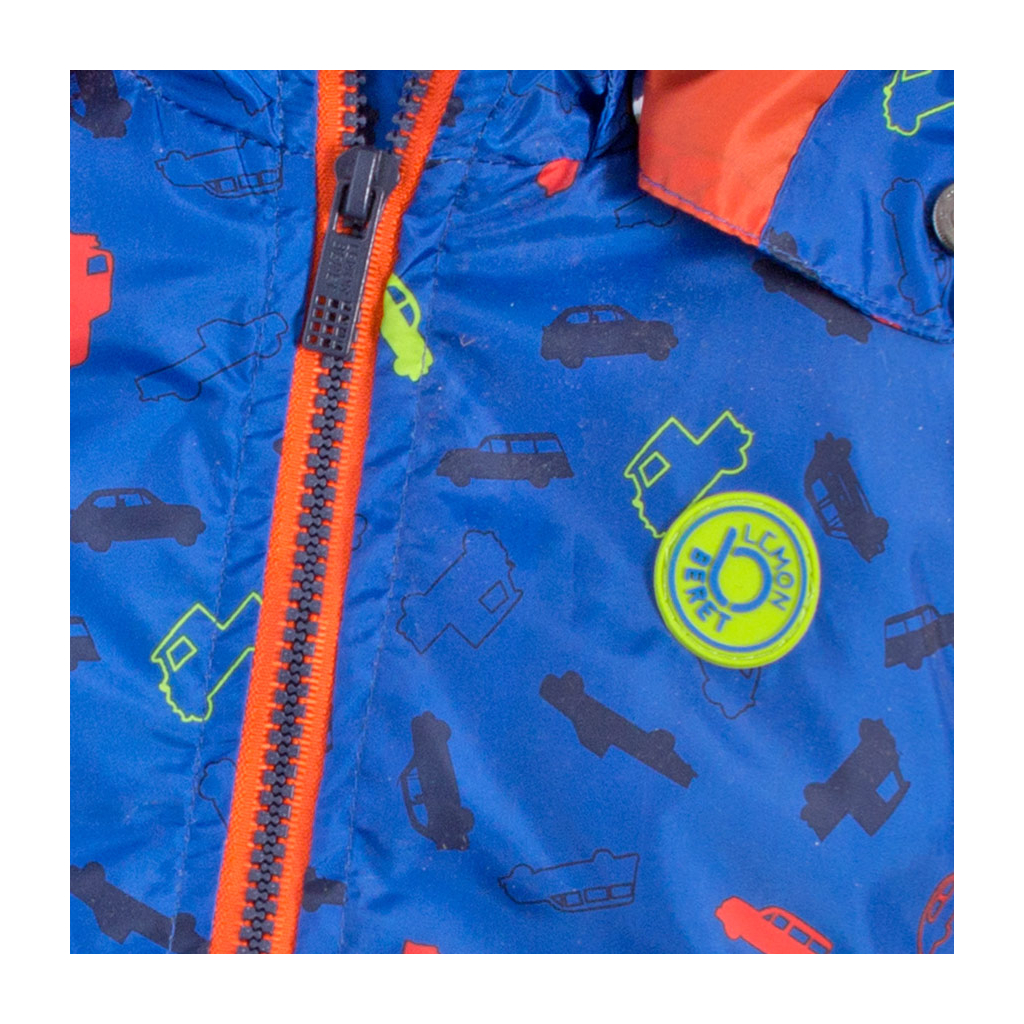 Šuštiaková bunda s potlačou autíčok. Zapínanie na zips, pri krku stojačik. Odopínacia kapucňa. Praktické vrecká so zapínaním.