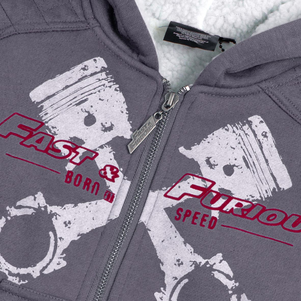 Chlapčenská mikina s motívom RÝCHLO a ZBESILO. Zapínanie na kovový zips. Našité vrecká. Podšívka z hrejivej kožušinky.Dodatočné parametre