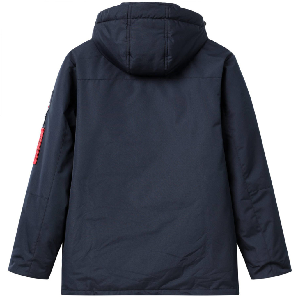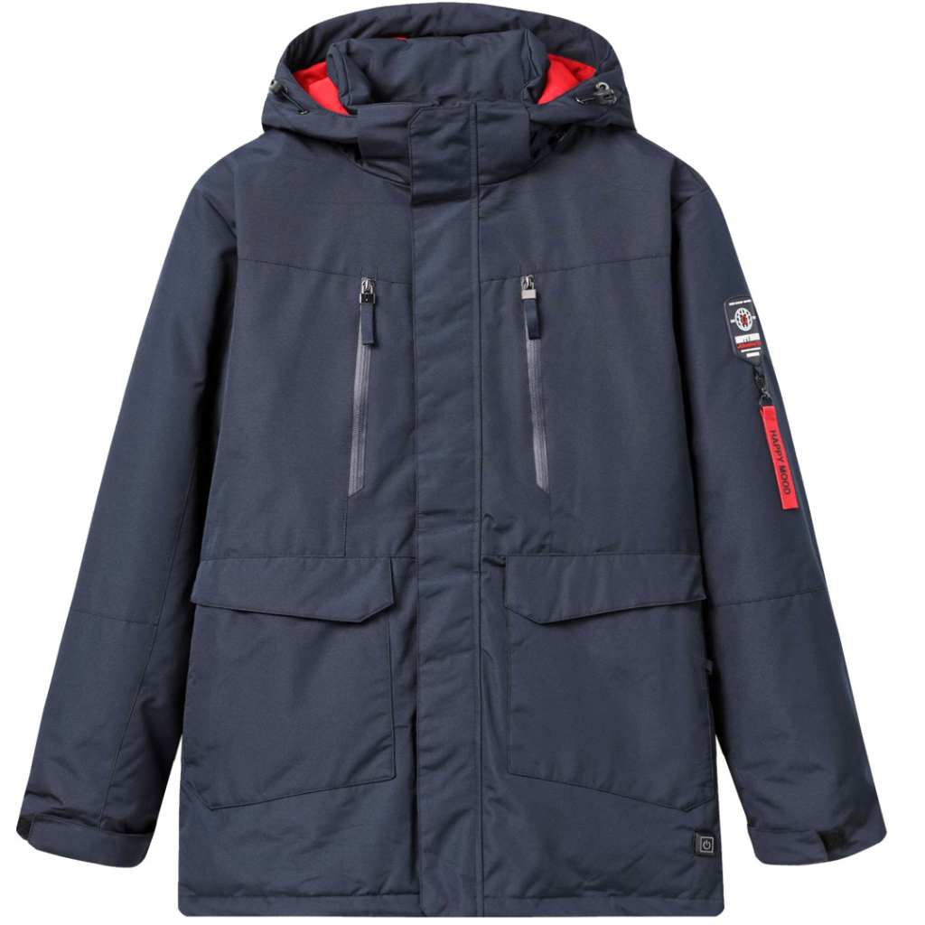 Chlapčenská zimná bunda. Odopínacia kapucňa s možnosťou stiahnutia. Zips krytý légou s patentkami. Náprsné vrecká so zipsom. Spodné vrecká majú klopu s patentkami, z boku zips. Rukávy s vnútorným pružným lemom.Dodatočné parametre