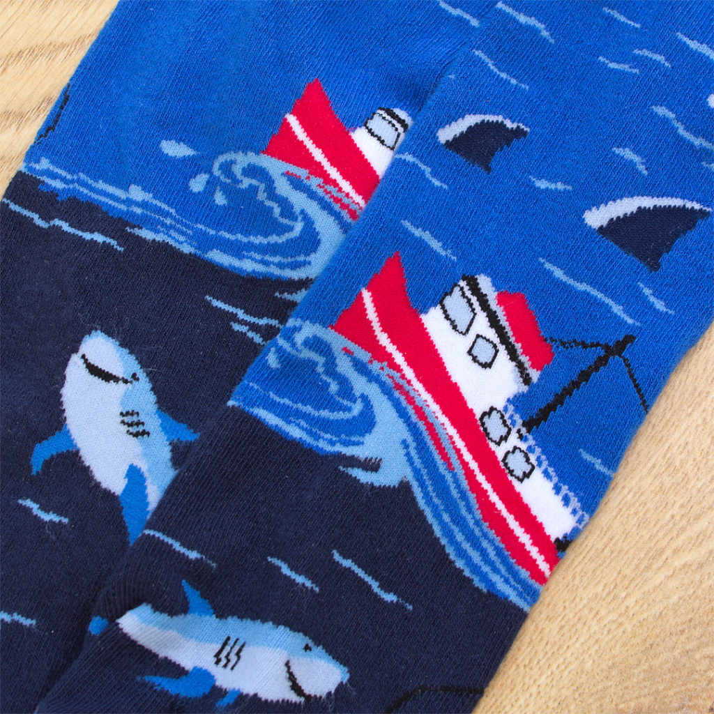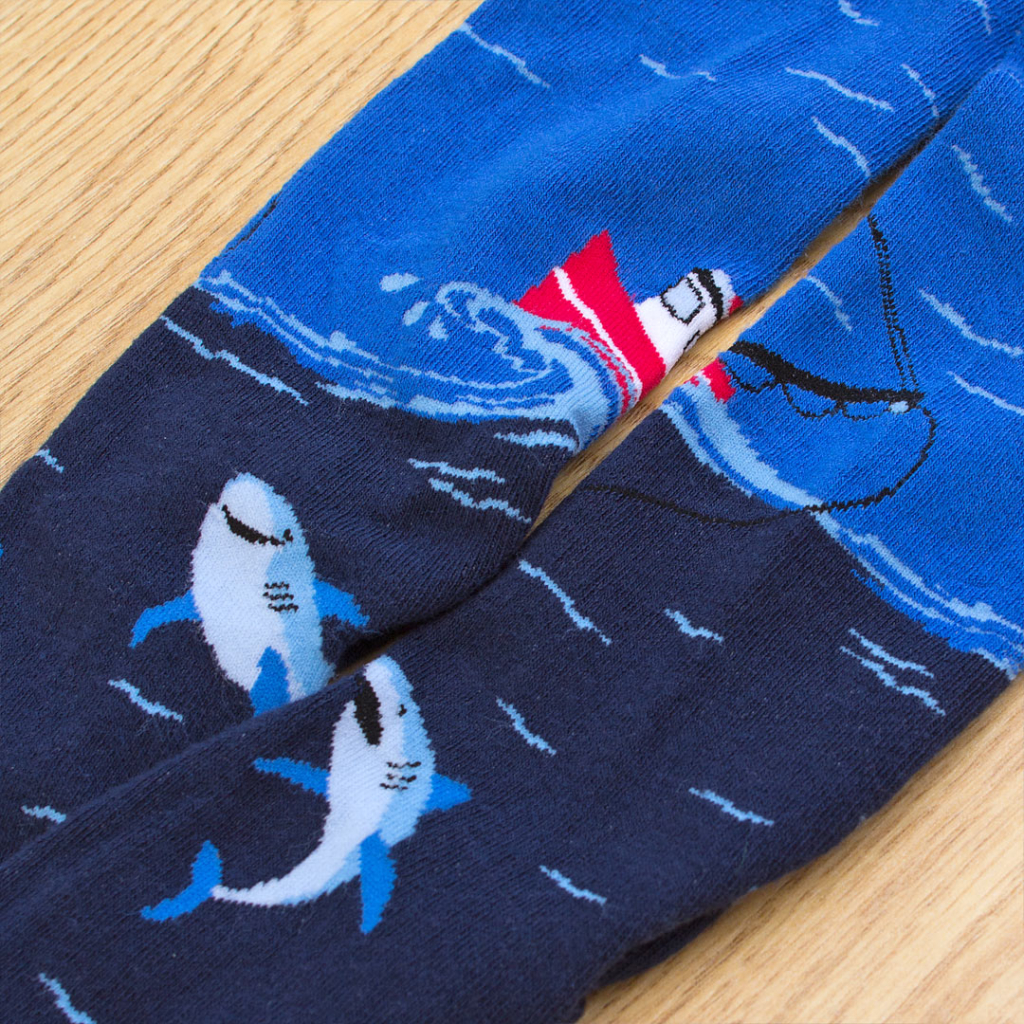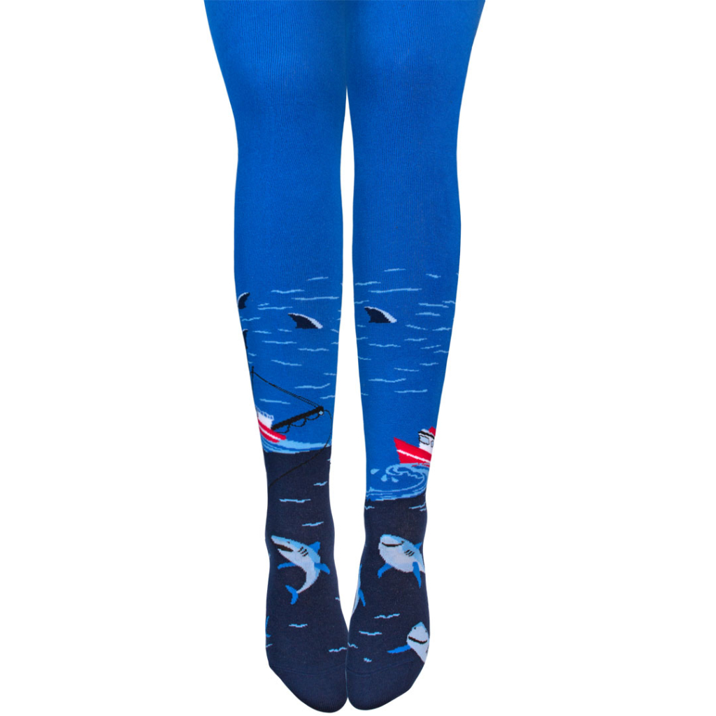 Detské pančuchy s vypleteným vzorom žralokov. Príjemné materiálové zloženie, pančuchy sú elastické a perfektne držia tvar. Certifikát OEKOTEX100, class 1.Dodatočné parametre