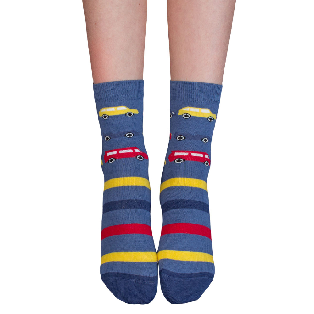 Detské ponožky s farebnými prúžkami a autíčkami. Príjemný elastický materiál, perfektne sedia na nohe, ploché švy. Certifikát OEKOTEX 100. Výrobca WOLA.Dodatočné parametre