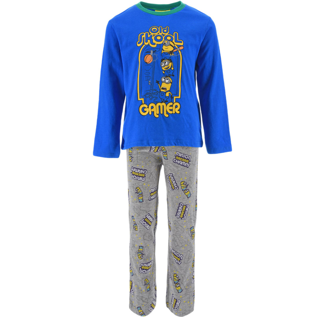 Chlapčenské pyžamo s Mimoňmi. Veľký obrázok na tričku, na nohaviciach drobnejšia potlač. Pohodlný úplet.Dodatočné parametre