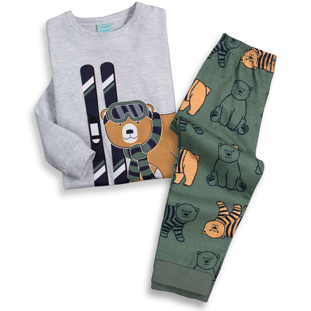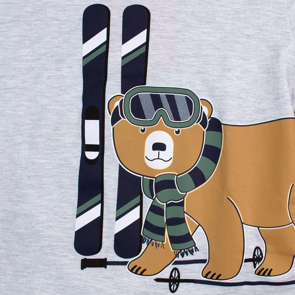 Chlapčenské pyžamo KYLY MEDVEĎ NA LYŽIACH šedé