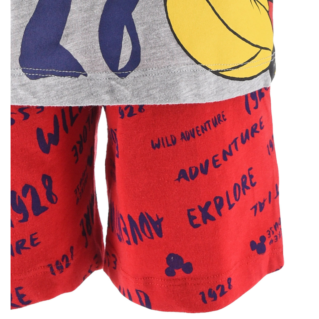 Chlapčenské pyžamo s Miceky Mousom. Tričko s krátkym rukávom, s veľkým obrázkom. Šortky s potlačou - nápisy. Pohodlný bavlnený úplet.