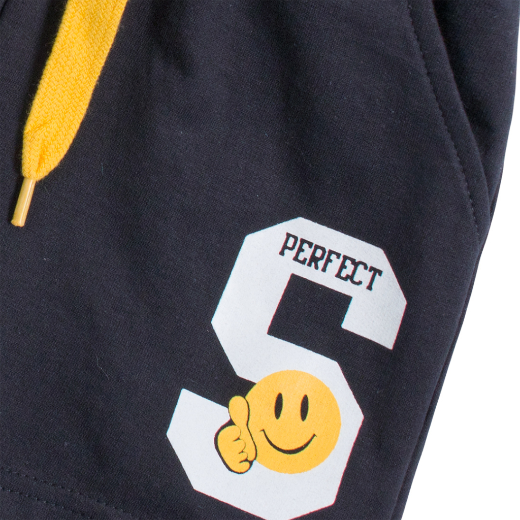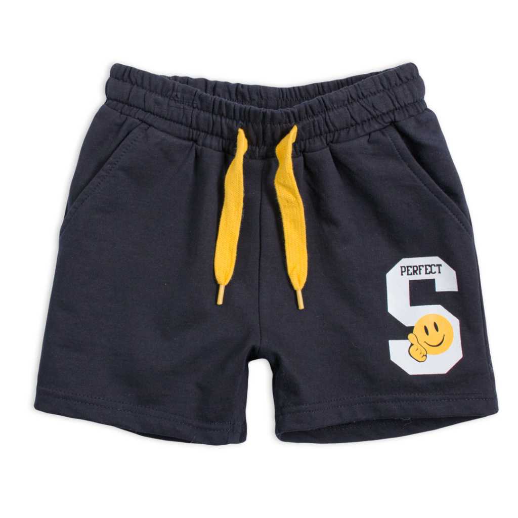 Chlapčenské šortky z pohodlného úpletu, s potlačou. V páse guma, šnúrka na stiahnutie. Na bokoch vrecká. Teplákovina na rube bez chĺpku.