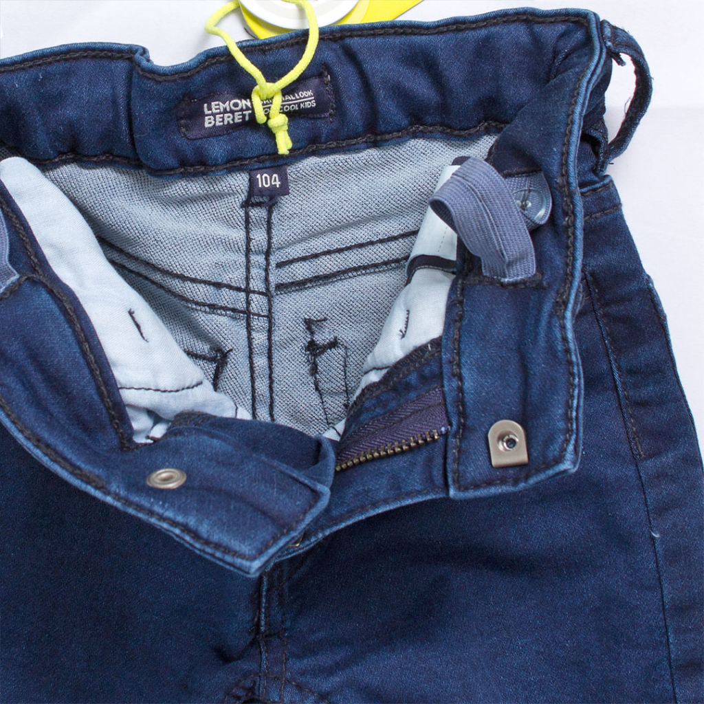 Chlapčenské šortky z pružnej, mäkkej džínsoviny. Ideálna kombinácia džínsového vzhľadu a pohodlia teplákov. Zapínanie na zips a háčik, v páse guma s možnosťou stiahnutia. Funkčné vrecká vpredu i vzadu. Vyhrnutie nohavíc nie je prišité.Dodatočné parametre