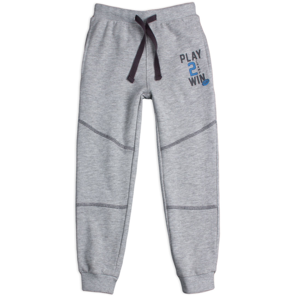 Chlapčenské tepláky s potlačou a ozdobným prešitím. V páse guma a šnúrka na stiahnutie. Praktické vrecká na bokoch a vzadu. Teplákovina na rube bez chĺpku.Dodatočné parametre
