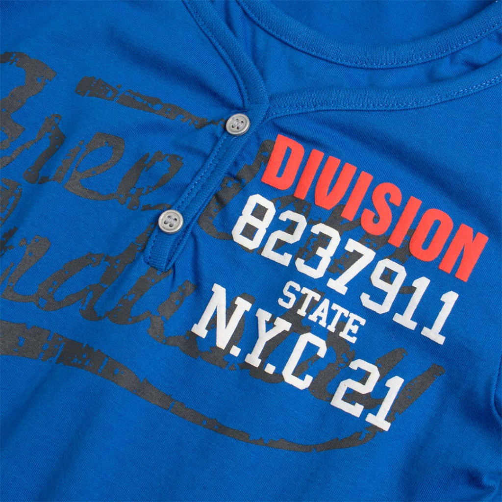Chlapčenské tričko s dlhým rukávom. S nápisom, ozdobnými gombíkmi a vsadkou vo výstrihu. Mäkký bavlnený úplet.Dodatočné parametre