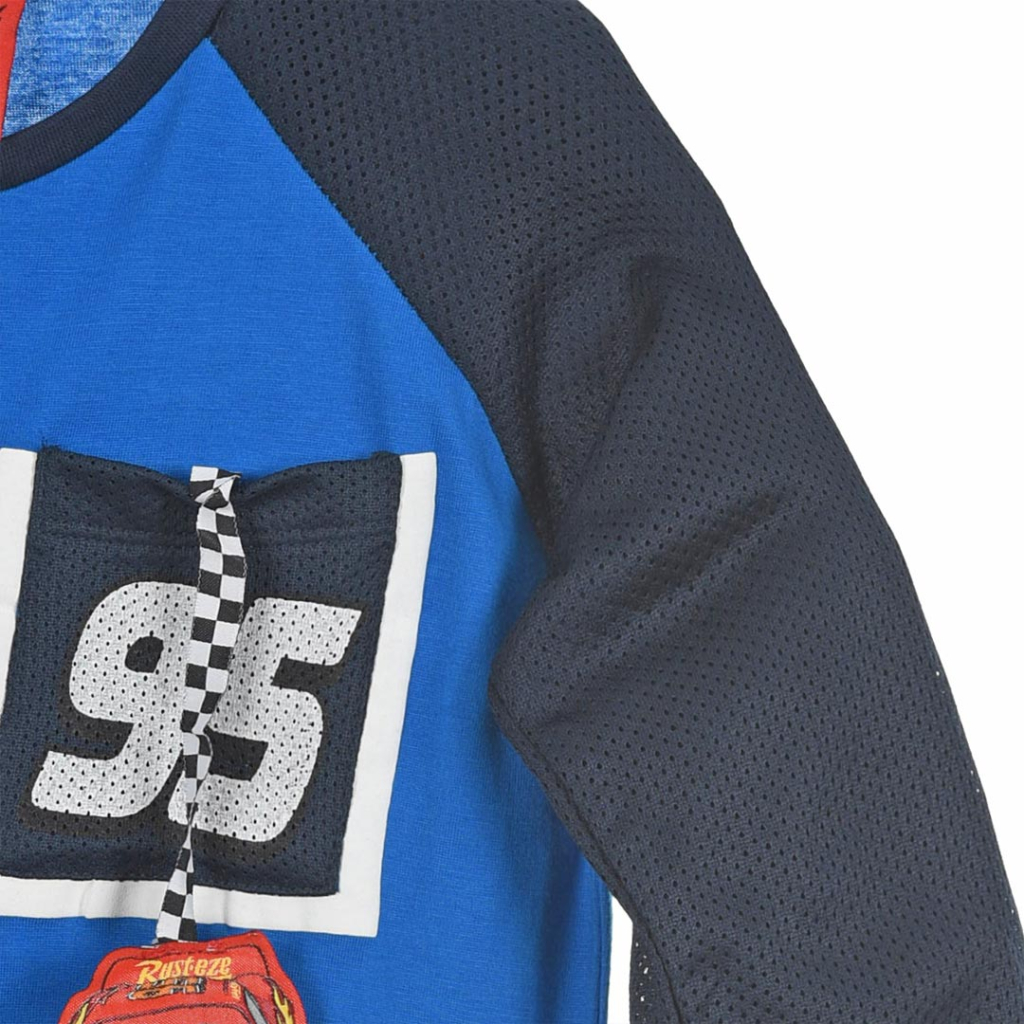 Chlapčenské tričko s dlhým rukávom, s potlačou z filmu Autá. Našité vrecko s autíčkom na šnúrke. Rukávy zo sieťoviny s úpletovou podšívkou.