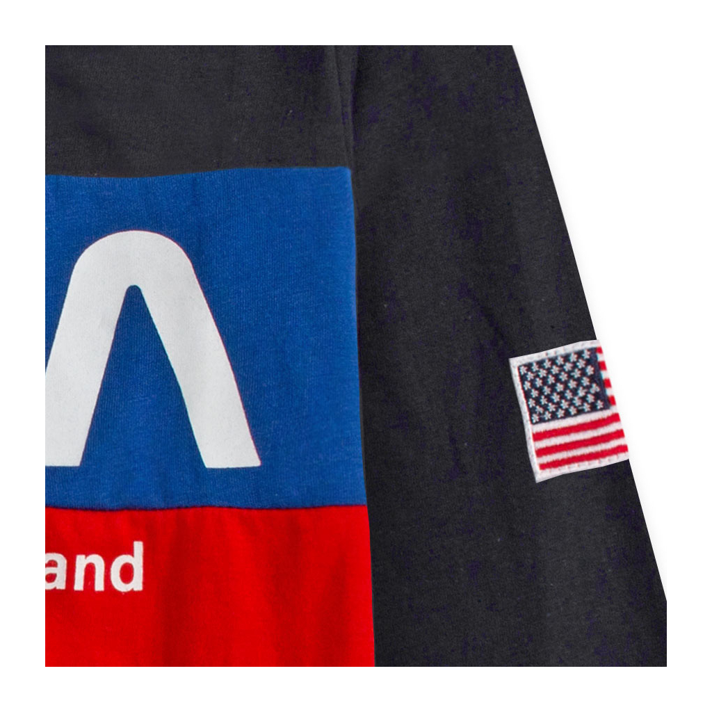 Chlapčenské tričko s dlhým rukávom. S motívom americkej vesmírnej agentúry NASA. Dole rozparok, mierne predĺžený zadný diel. Bavlnený úplet.Dodatočné parametre