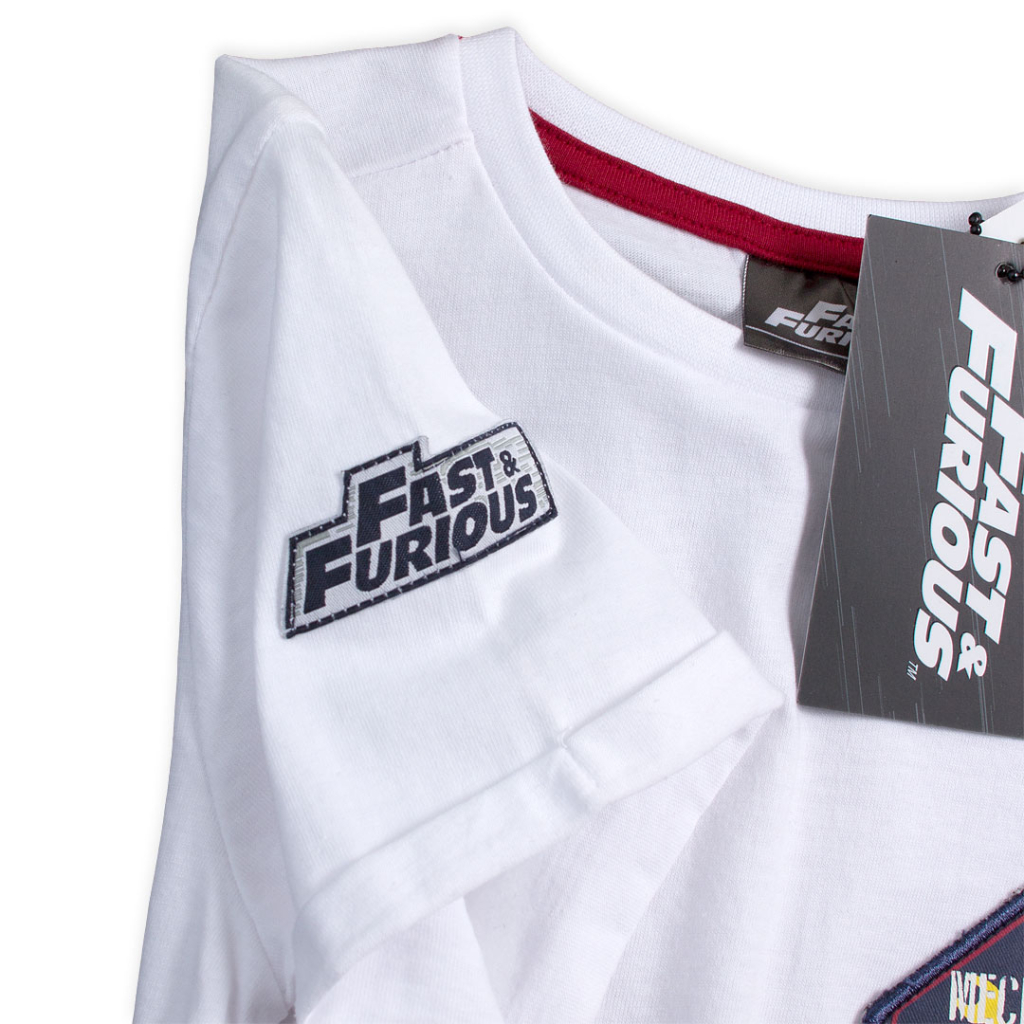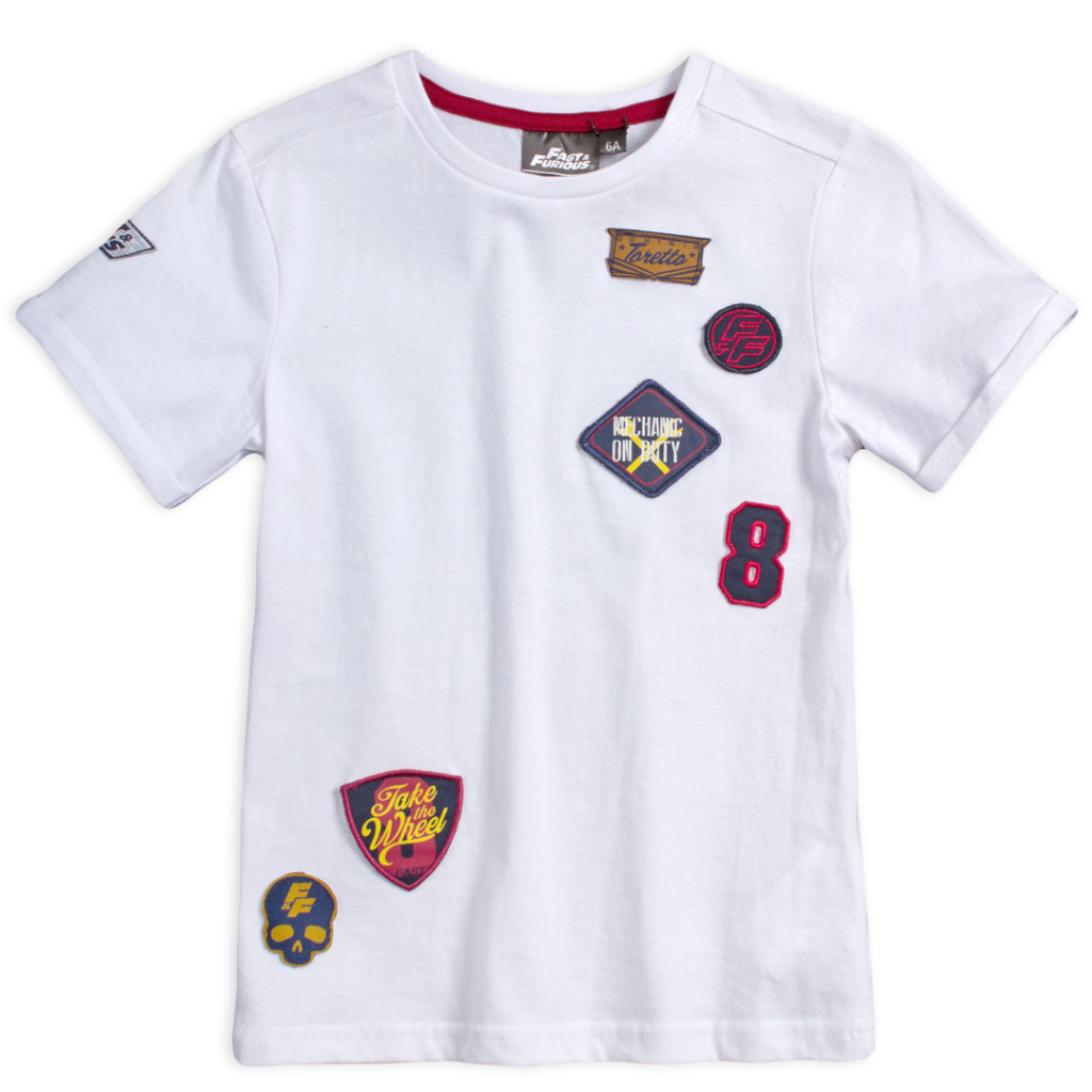 Chlapčenské tričko s krátkym rukávom. Vpredu a na rukáve nášivky s motívom Rýchlo a zbesilo. Prišité vyhrnutie rukávu. Príjemný úplet.Dodatočné parametre