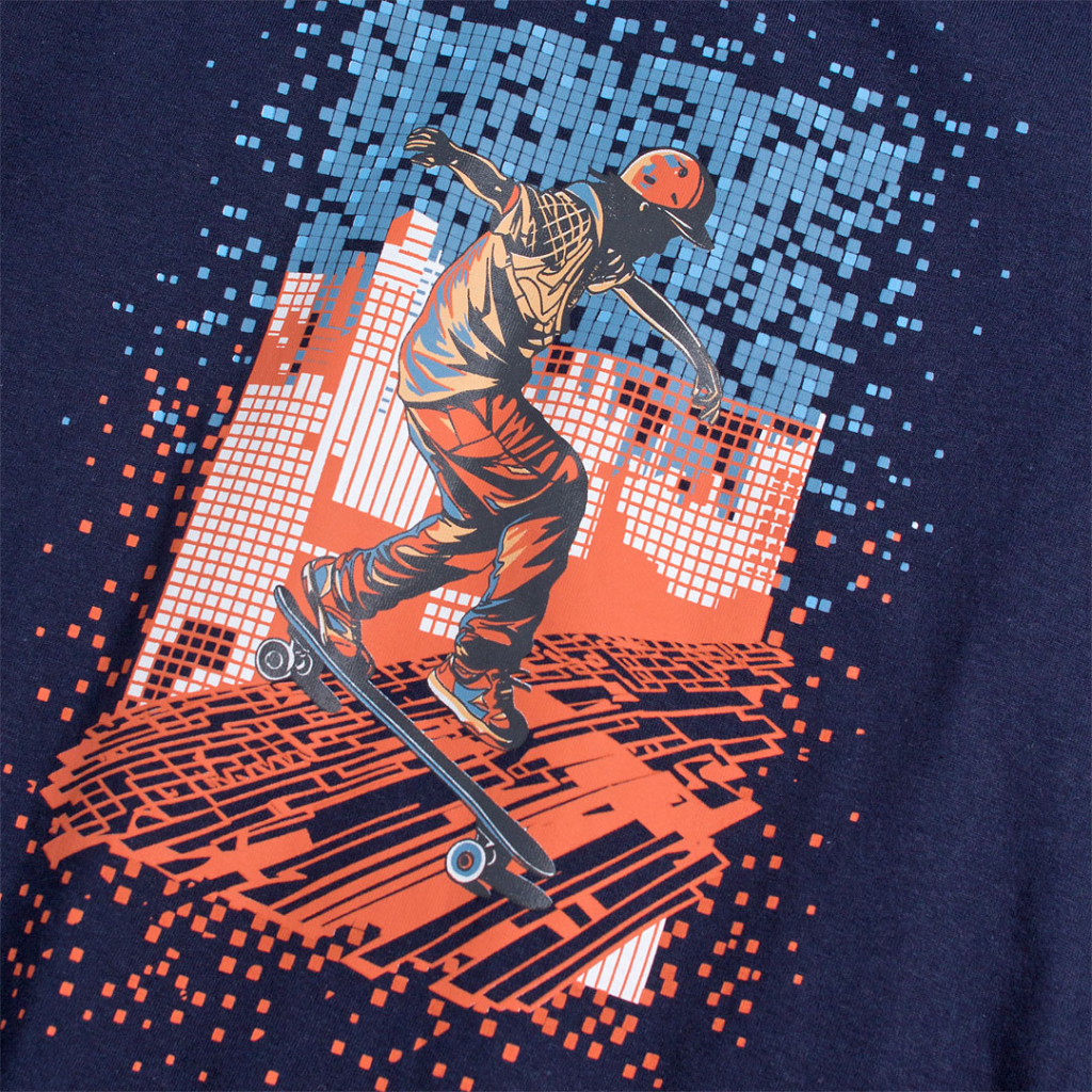 Chlapčenské tričko s krátkym rukávom, s obrázkom skateboardistu. Príjemný bavlnený úplet. Vyrobené v Brazílii.Dodatočné parametre