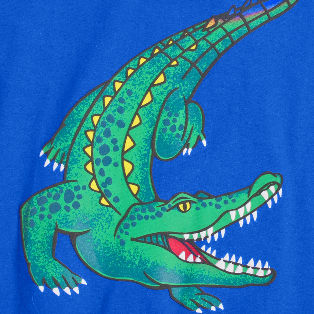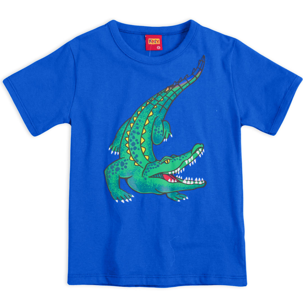 Chlapčenské tričko s krátkym rukávom. Čiastočne plastická potlač krokodíla. Bavlnený úplet. Vyrobené v Brazílii.Dodatočné parametre
