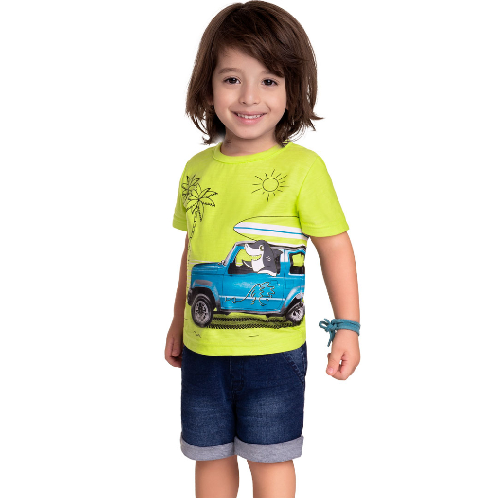 Chlapčenské tričko s krátkym rukávom. Veselá potlač na príjemnom úplete. Vyrobené v Brazílii.Dodatočné parametre