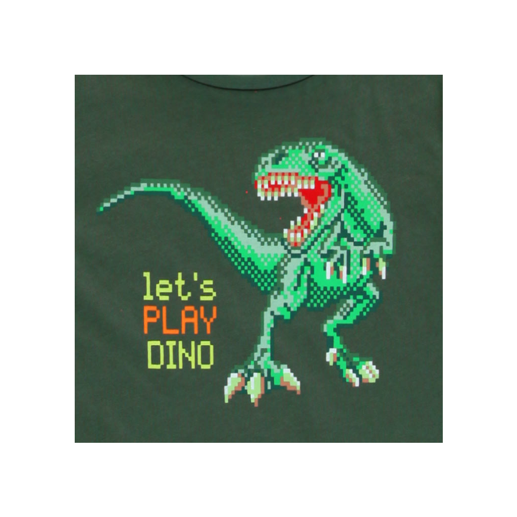 Chlapčenské tričko s krátkym rukávom. Obrázok dinosaura rozdelený na pixely. Príjemný, pružný materiál.Dodatočné parametre