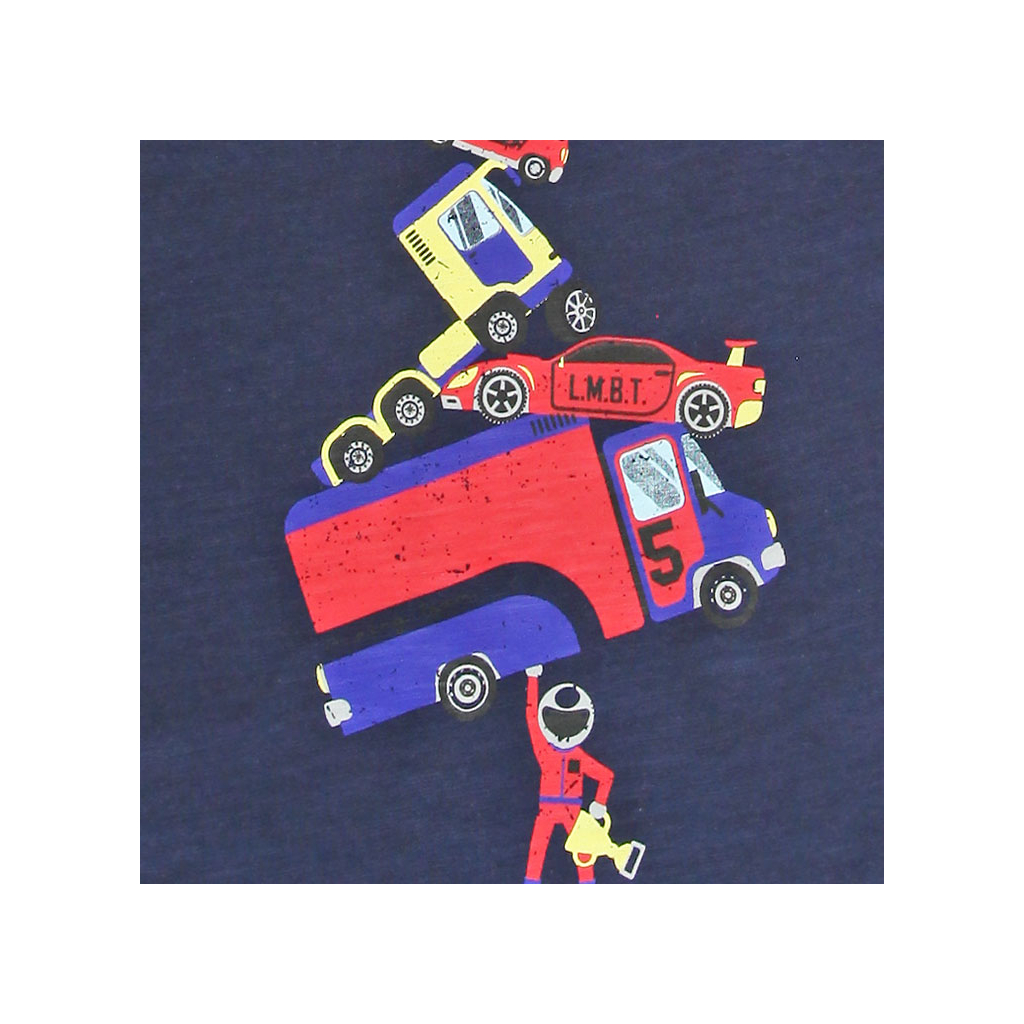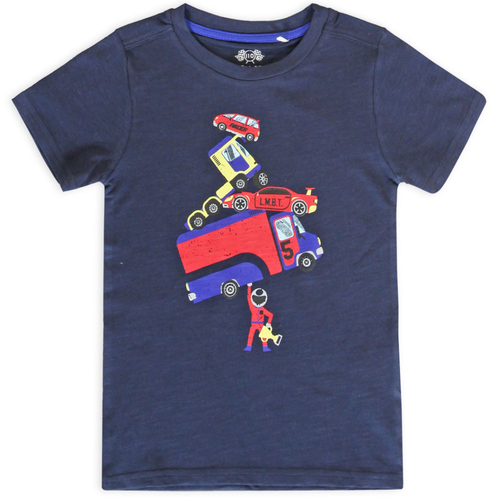 Tričko s krátkym rukávom. Farebná potlač na tmavo modrom podklade. Príjemný, pružný úplet z bio bavlny.Dodatočné parametre