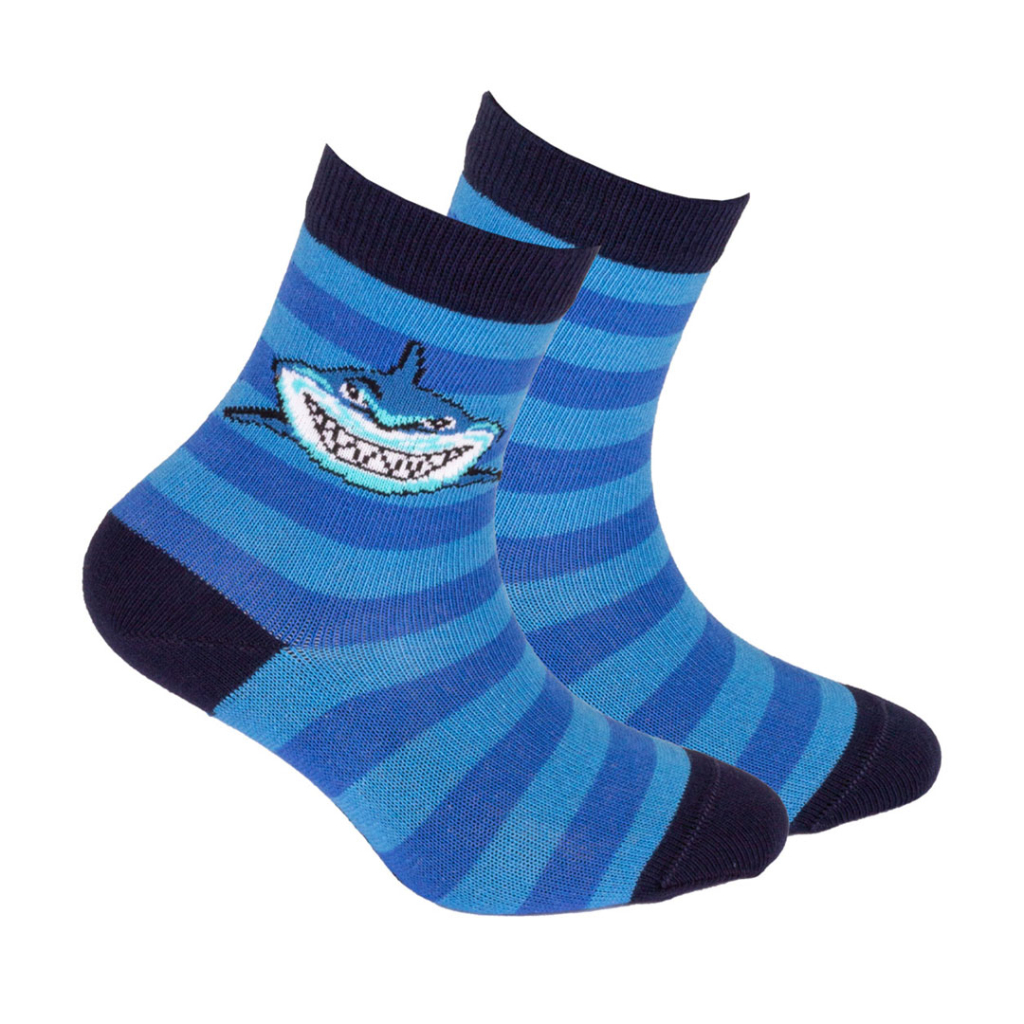 Detské ponožky s obrázkom žraloka a prúžkami. Príjemný elastický materiál, perfektne sedia na nohe, ploché švy. Certifikát OEKOTEX 100. Výrobca GATTA.Dodatočné parametre