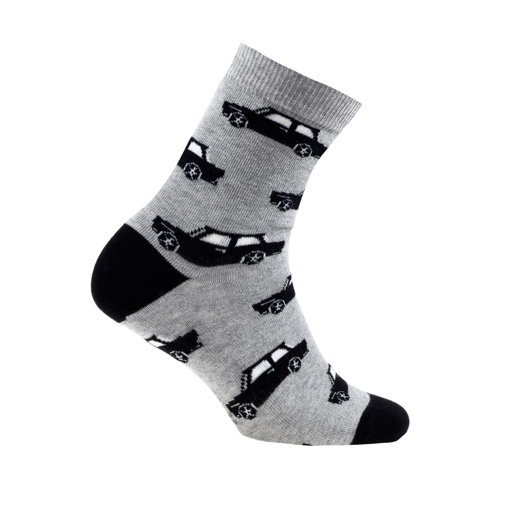 Chlapčenské vzorované ponožky so vzorom áut. Príjemný elastický materiál, perfektne sedia na nohe. Certifikát OEKOTEX 100. Výrobca GATTA.Dodatočné parametre