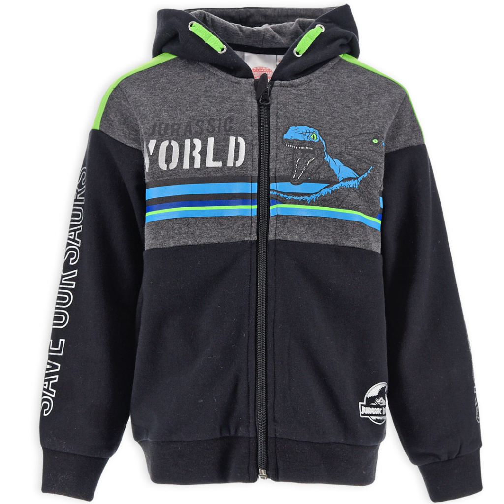 Mikina s motívom dinosaurov z filmu Jurský svet. Potlač vpredu a na rukávoch, na bokoch vrecká. Teplákovina na rube s chĺpkom.Dodatočné parametre