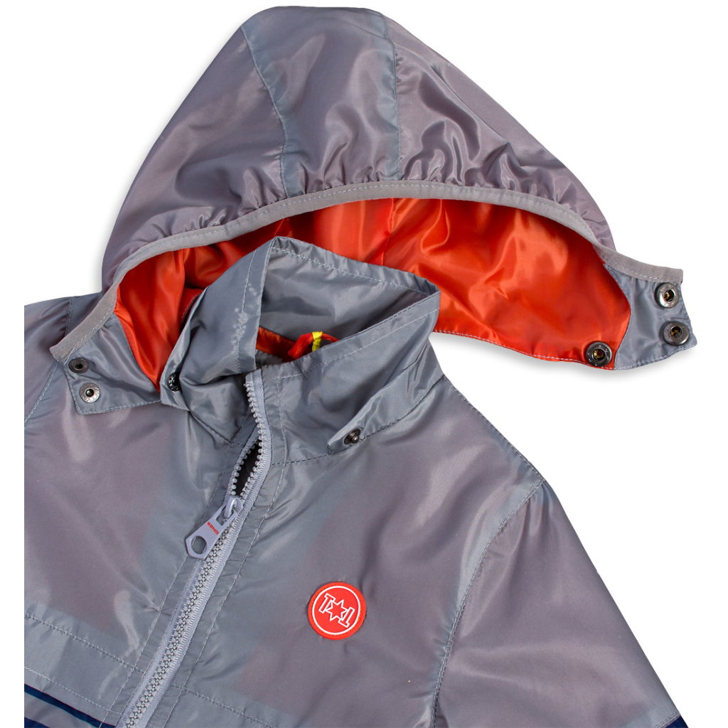 Chlapčenská šuštiaková bunda. Pri krku stojačik, kapucňa je odopínacia - na patentky. Vrecká so zapínaním. Šuštiaková podšívka.