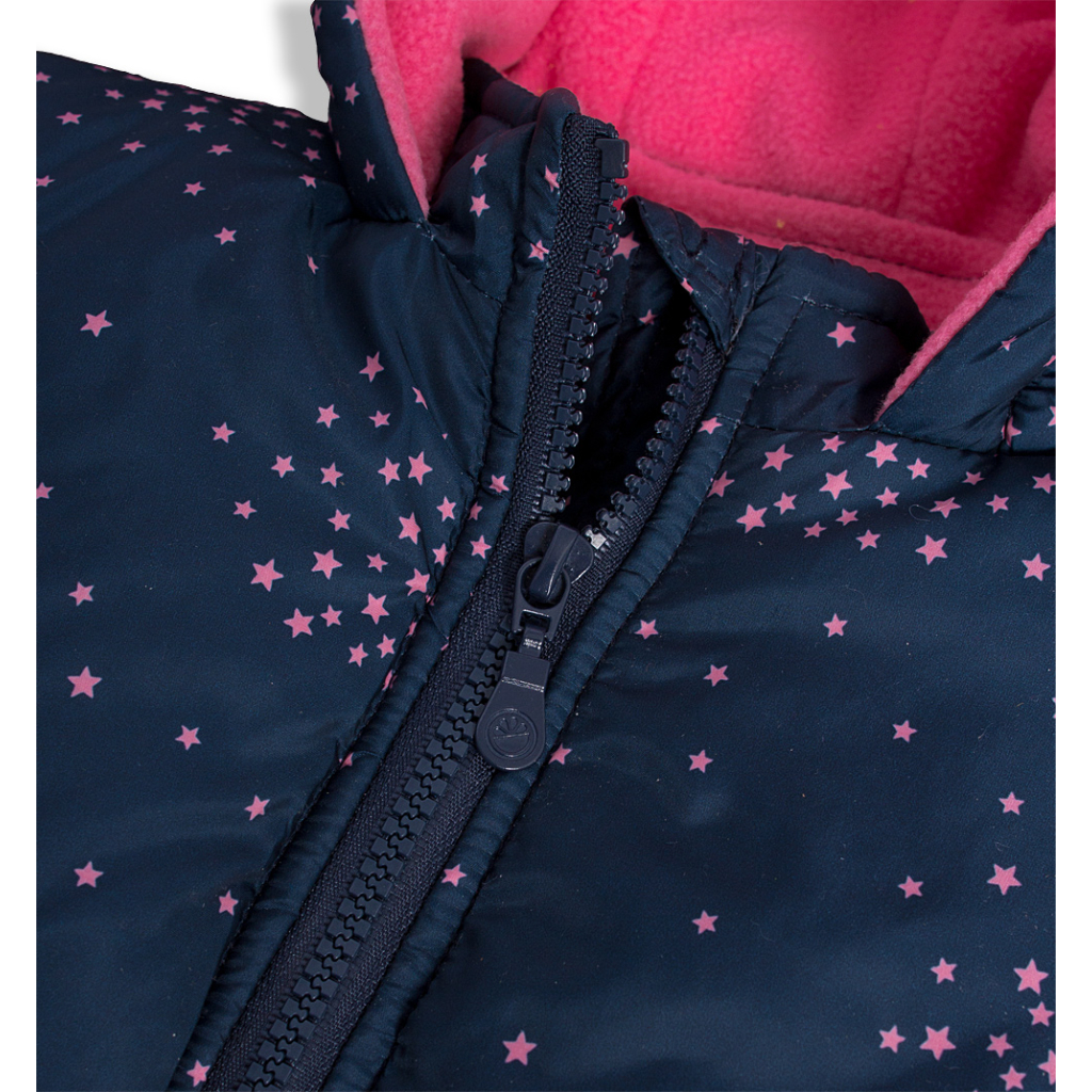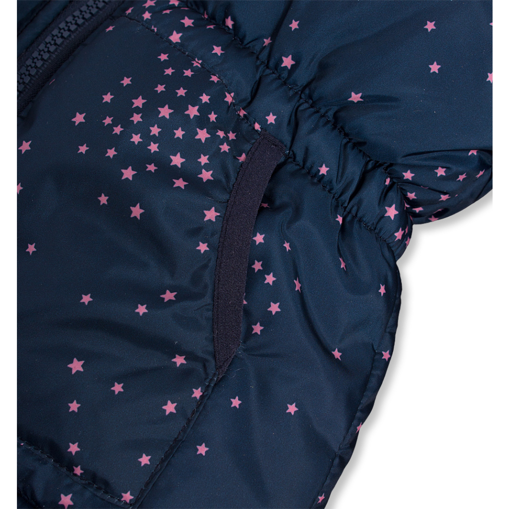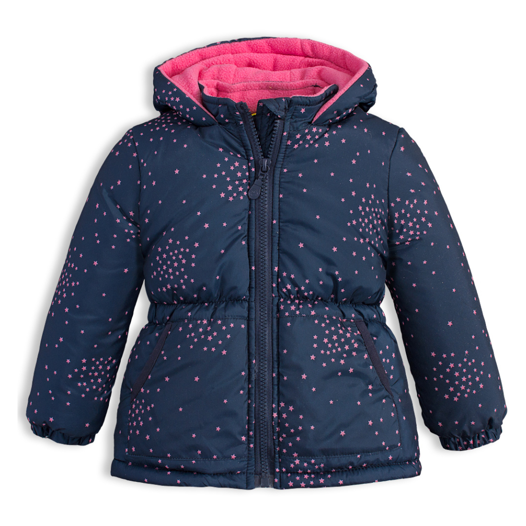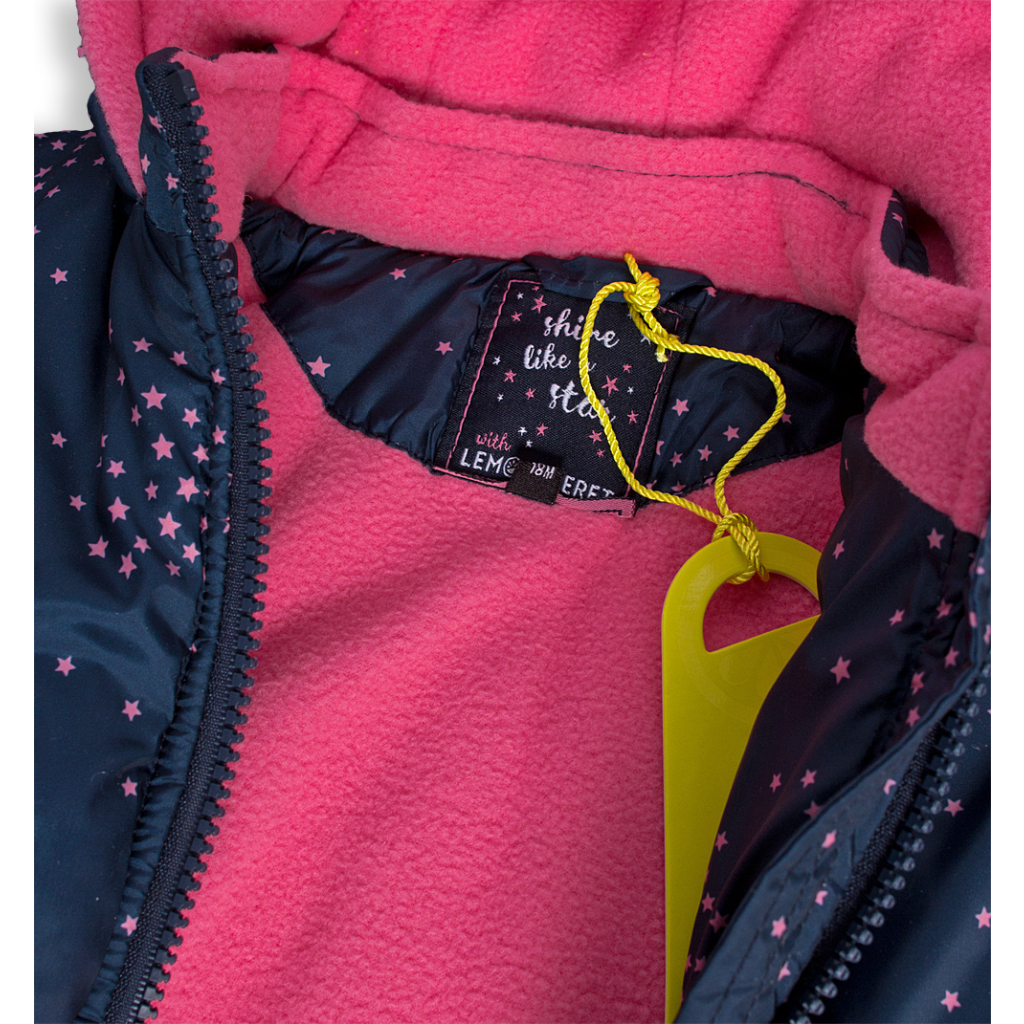 Zimná bunda pre dievčatá. Zapínanie na zips. Kapucňu nemožno odopnúť. Rukávy do gumy. V páse guma. Hrejivá fleecová podšívka. V rukávoch šuštiak pre ľahké obliekanie. Funkčné vrecká.Dodatočné parametre