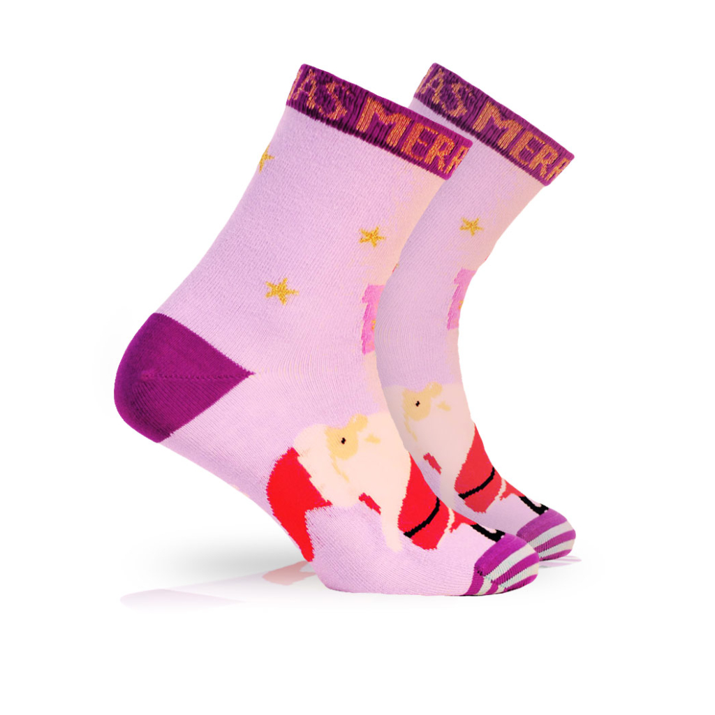Detské ponožky s vianočným motívom WOLA SANTA DARČEKY fialové