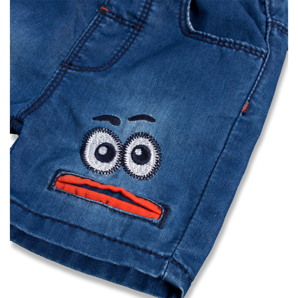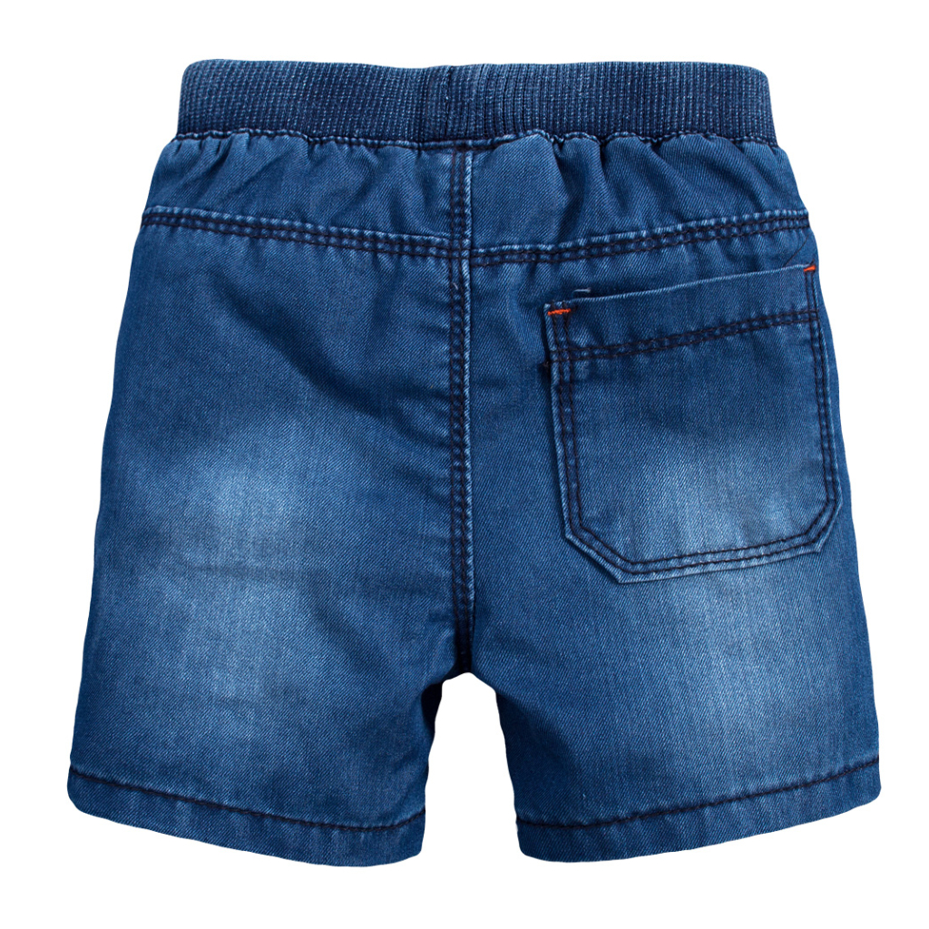 Detské šortky z mäkkej, odľahčenej džínsoviny. V páse guma. Funkčné vrecká. Veselá aplikácia na nohavici.Dodatočné parametre