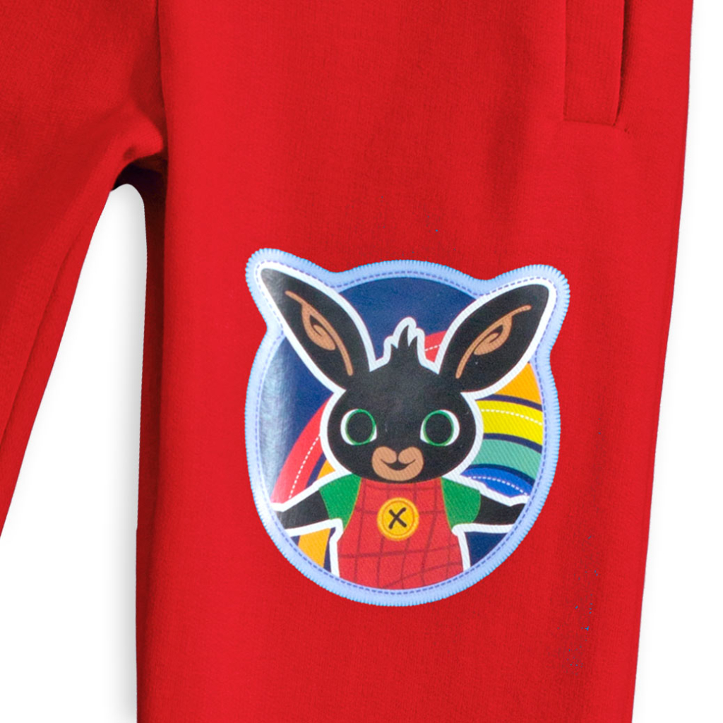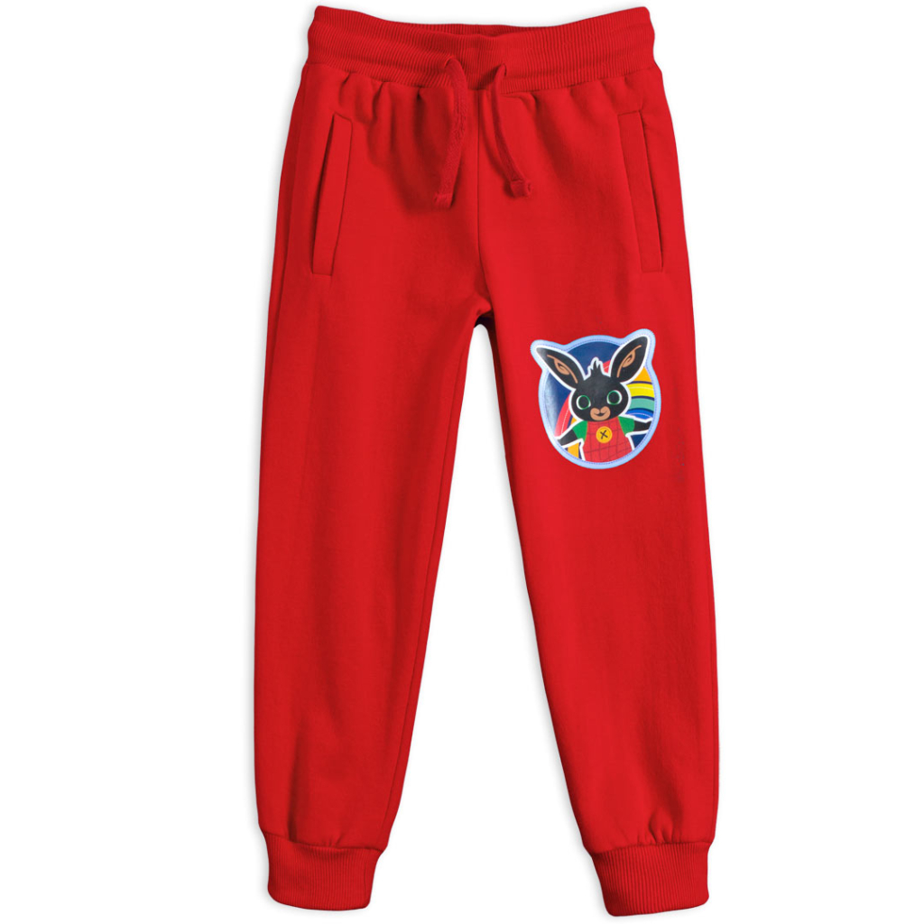 Detské tepláky so zajačikom Bingom. Vpredu všité vrecká, v páse guma a šnúrka na stiahnutie. Príjemná, mäkká teplákovina s jemným chĺpkom na rubovej strane.
