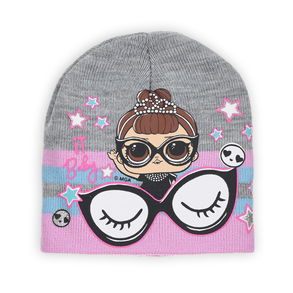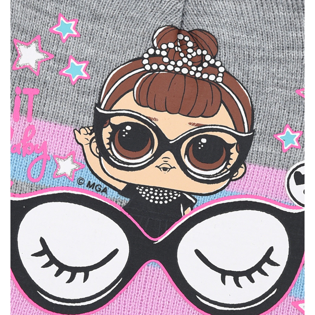 Dievčenská čiapka so svetielkujúcou potlačou L.o.l. Surprise. Príjemná pletenina. Farebne zladené prstové rukavice.Dodatočné parametre