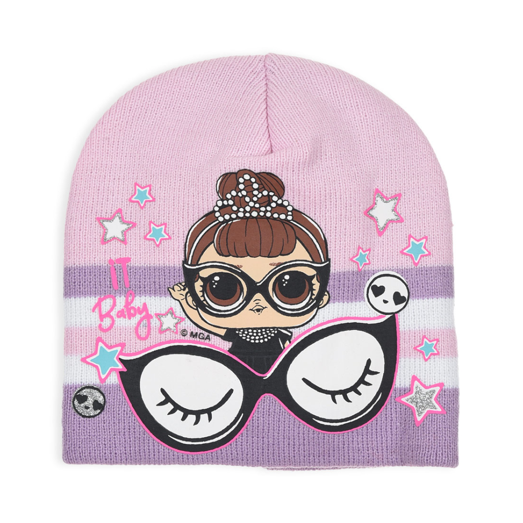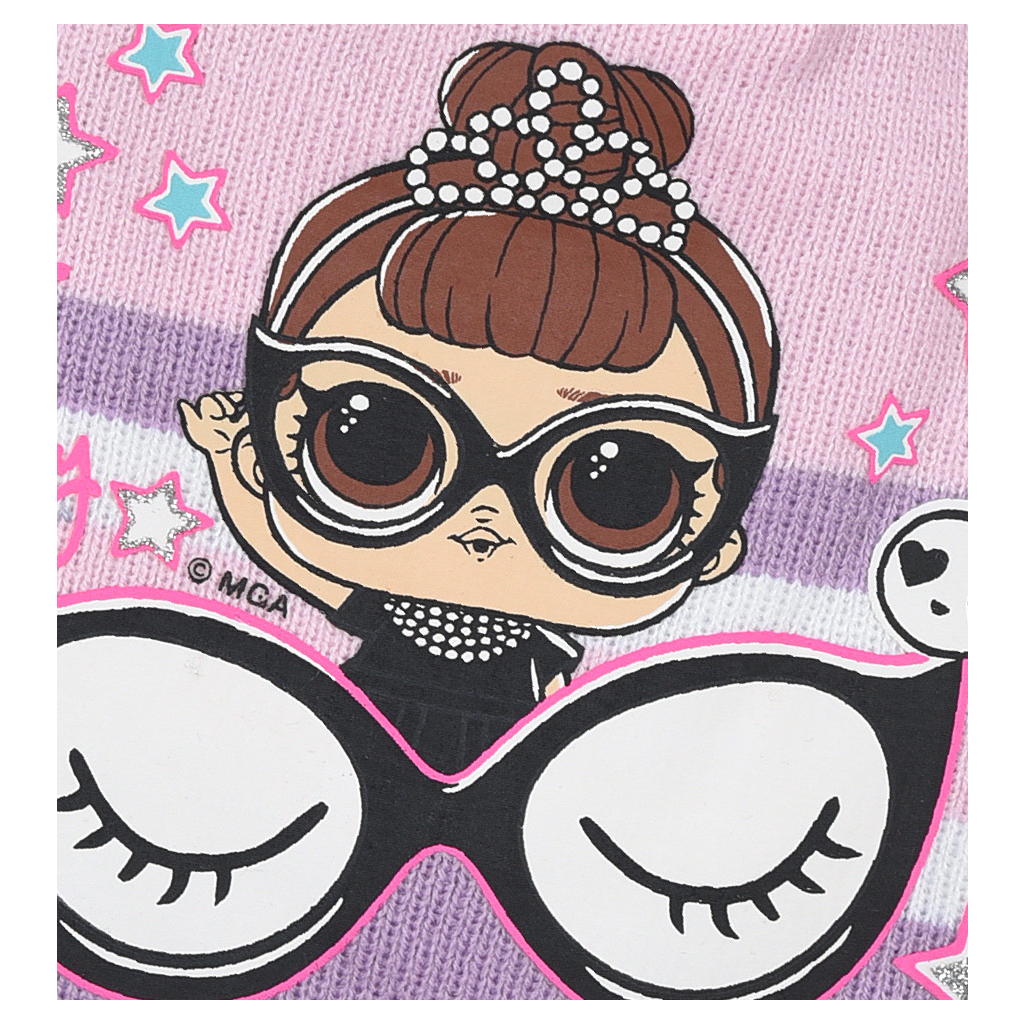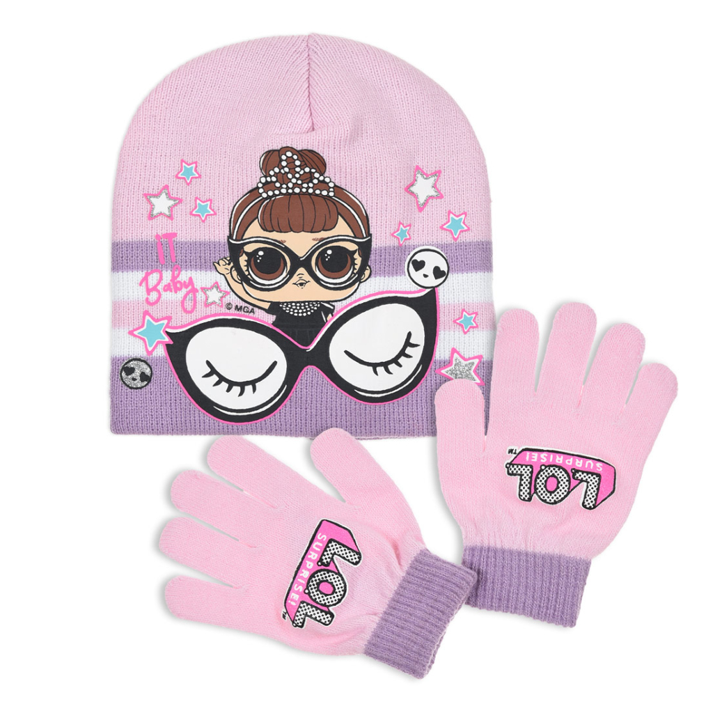Dievčenská čiapka so svetielkujúcou potlačou L.o.l. Surprise. Príjemná pletenina. Farebne zladené prstové rukavice.Dodatočné parametre