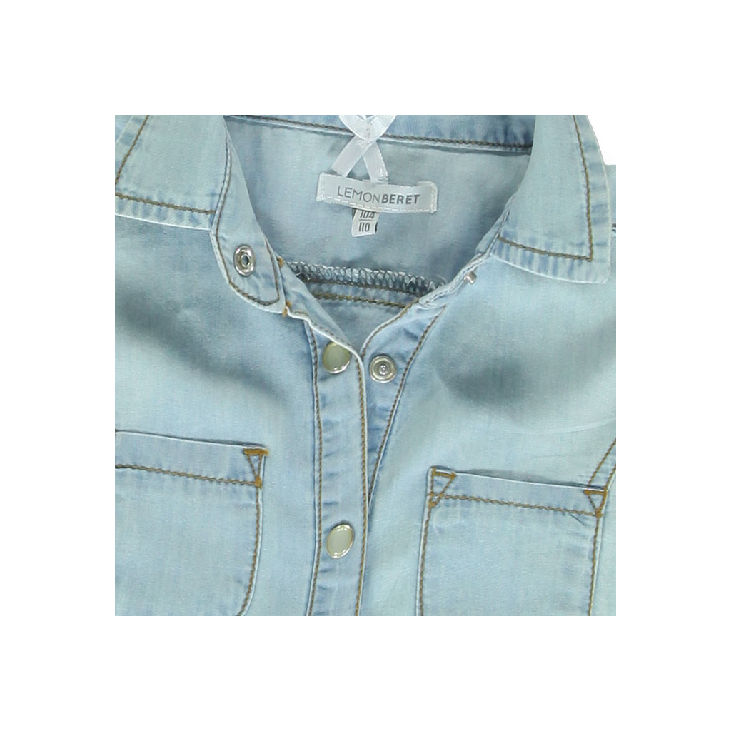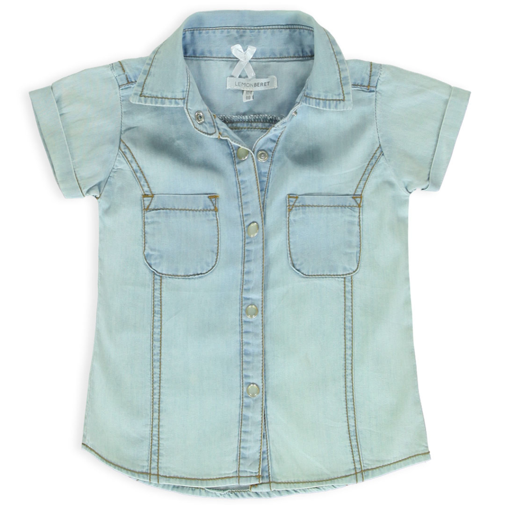 Dievčenská blúzka z mäkkej, ľahkej džínsoviny. Krátky rukáv, zapínanie na ozdobné patentky.Dodatočné parametre