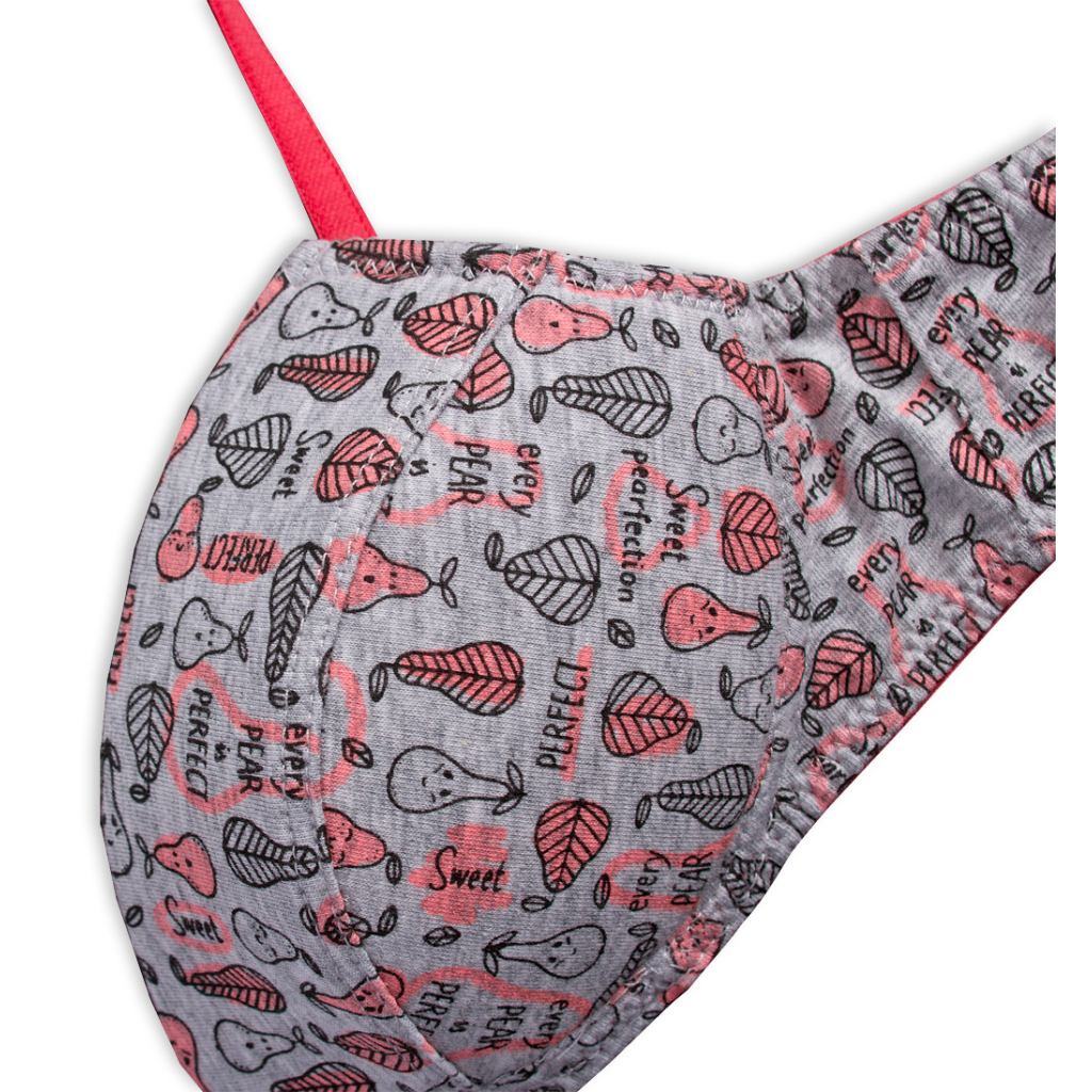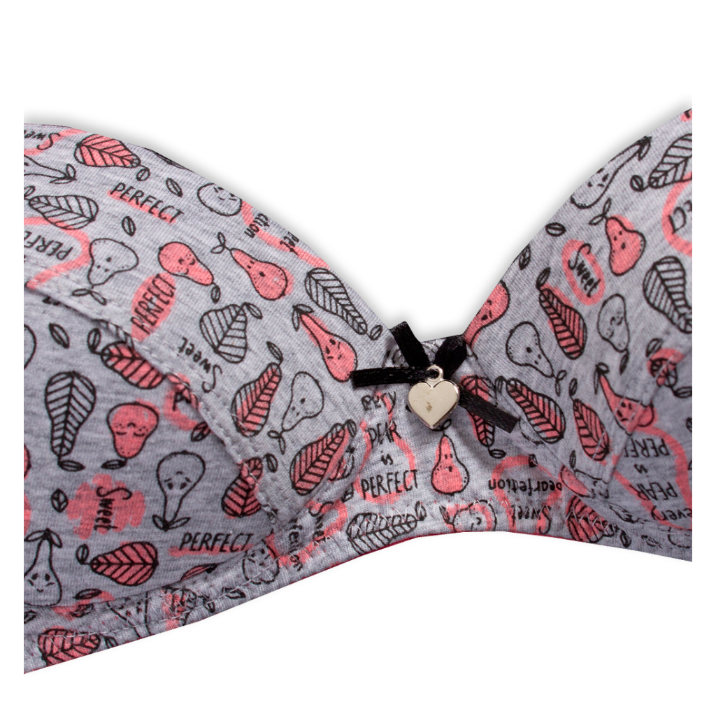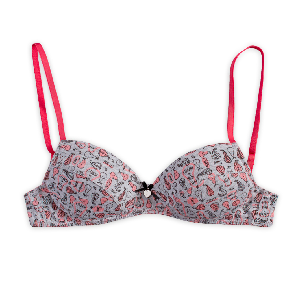 Dievčenská podprsenka s potlačou. Mierne vystužené košíčky. Bez kostíc. Ramienka s nastaviteľnou dĺžkou. Zapínanie vzadu na háčik.Dodatočné parametre
