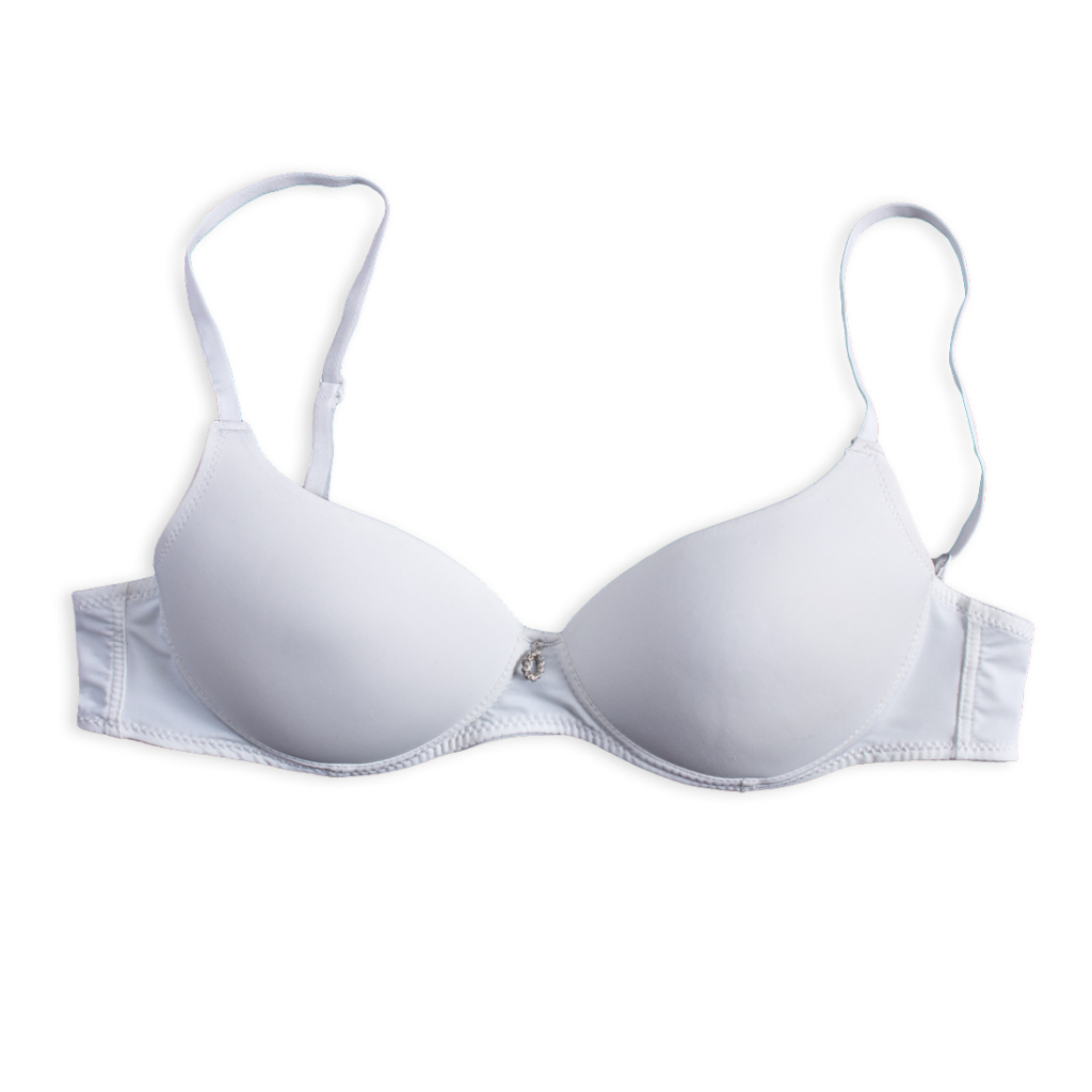 Dievčenská podprsenka s vystuženými, bezšvovými košíkmi. Bez kostíc. Ramienka majú nastaviteľnú dĺžku. Zapínanie vzadu na háčik. Štrasová ozdoba. Príjemný materiál, jemné mikrovlákno.