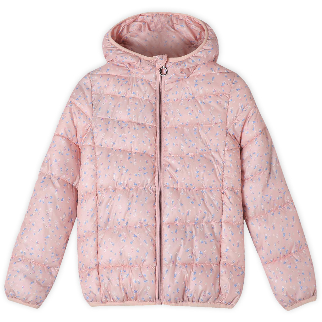 Prešívaná dievčenská bunda pre prechodné obdobie. S kapucňou, hlboké vrecká na zips. Jemná potlač kvetiniek. Šuštiaková podšívka.Dodatočné parametre