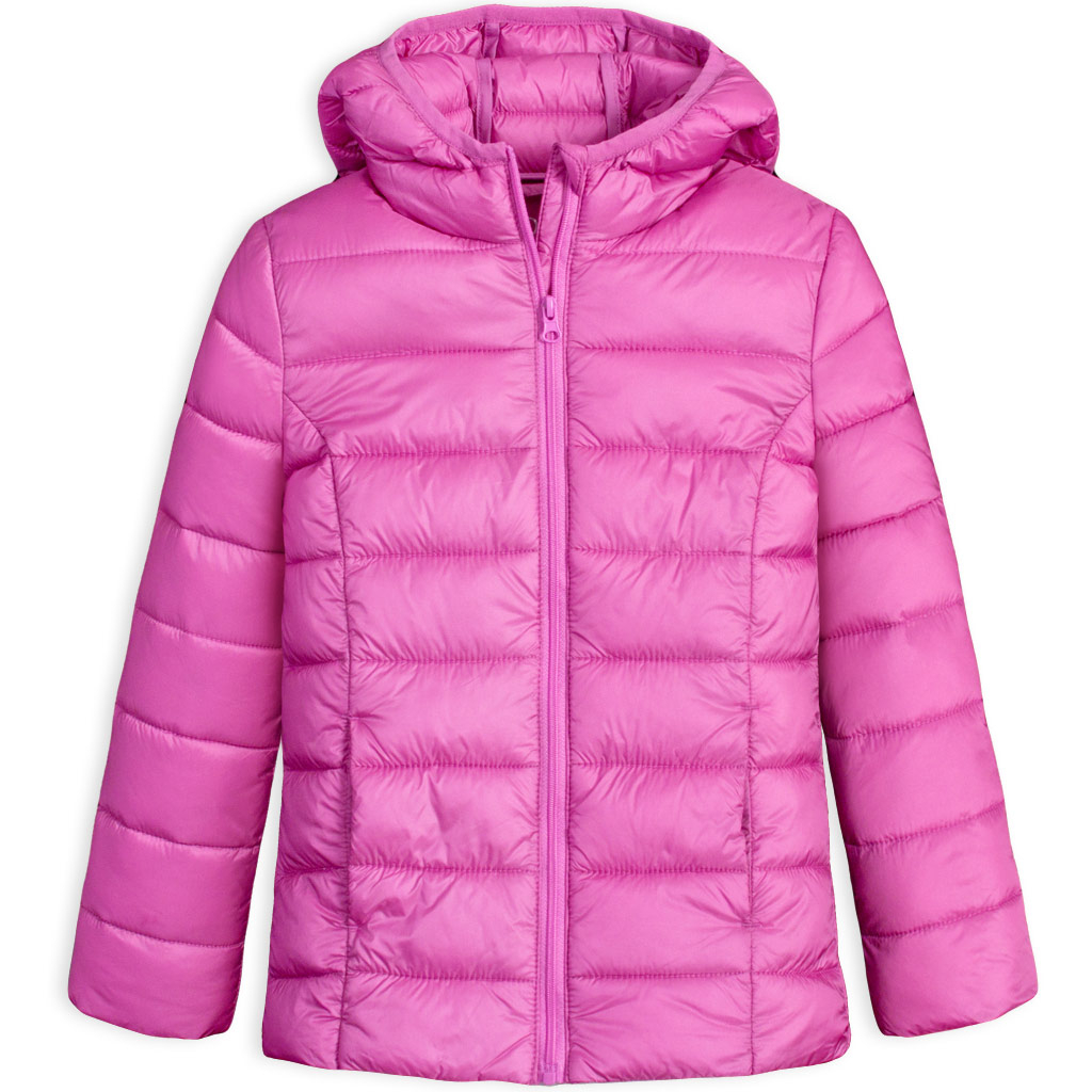 Dievčenská prešívaná bunda vhodná na prechodné obdobie, s tenšou výplňou. S kapucňou. Praktické, hlboké vrecká. Príjemný materiál, pastelová farba.Dodatočné parametre