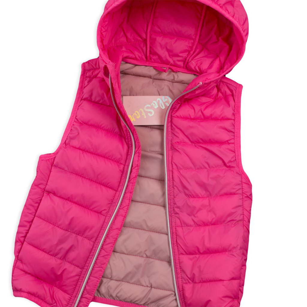 Ľahká dievčenská prešívaná vesta bez potlače. S kapucňou, stojačik pri krku. Hlboké vrecká.Dodatočné parametre