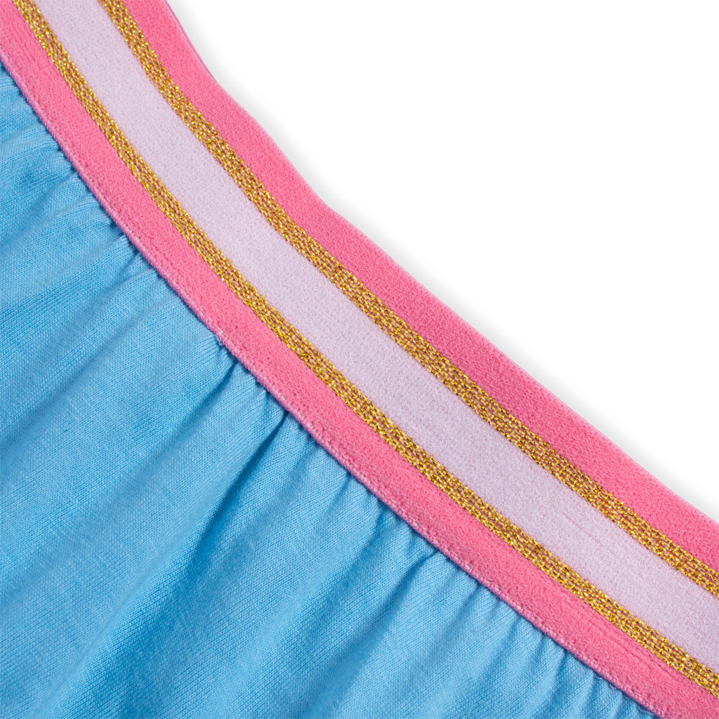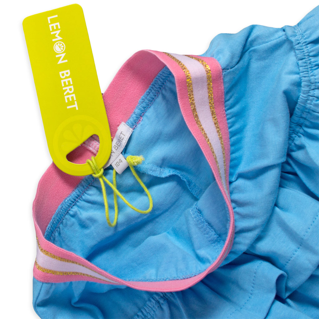 Dievčenská volánová sukienka so všitými šortkami. V páse farebná guma. Pohodlný bavlnený úplet.Dodatočné parametre