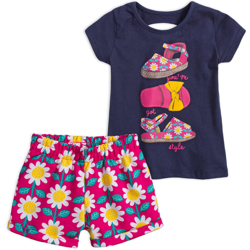 Krásna letná súprava pre dievčatá. Tričko s krátkym rukávom, s prestrihom na chrbte. Pohodlné šortky v páse na gumu, s potlačou kvetiniek.Dodatočné parametre